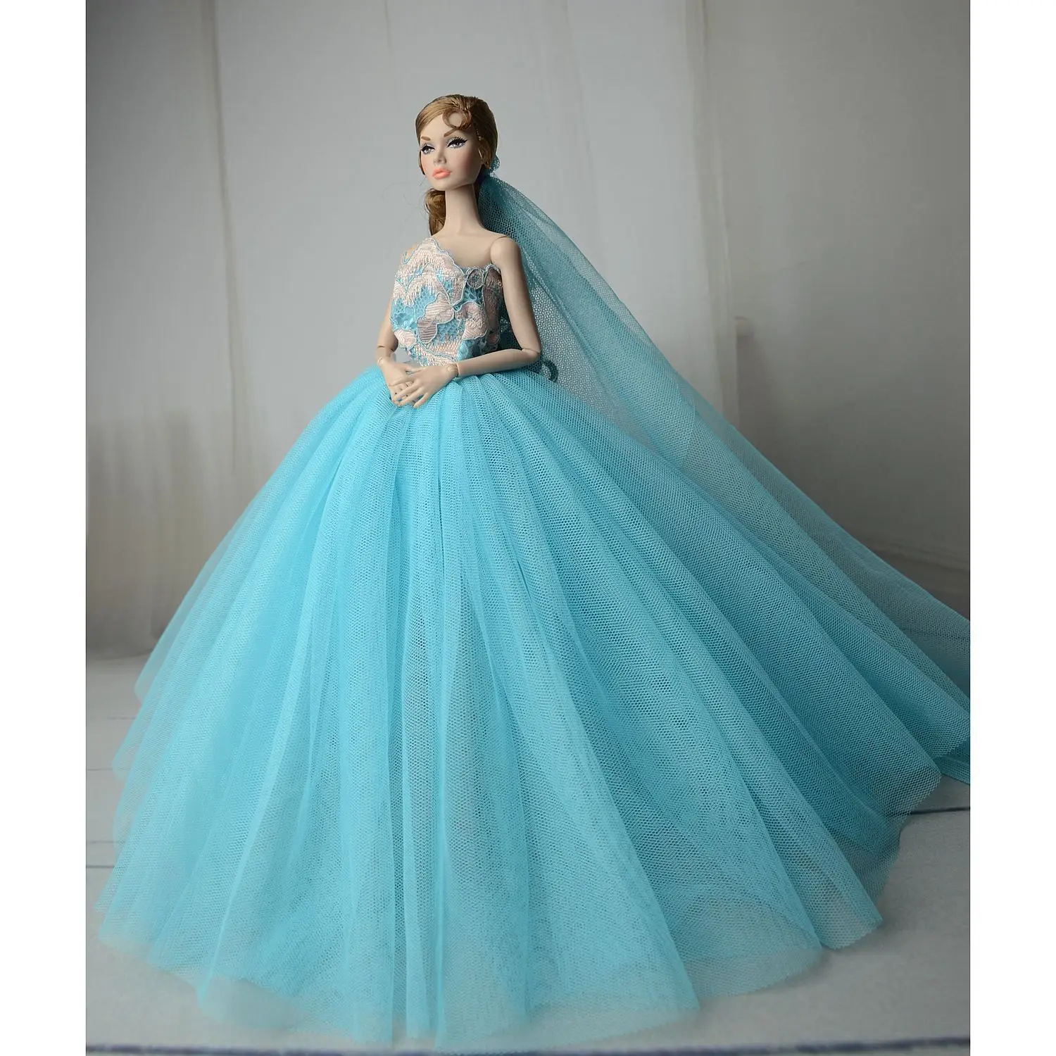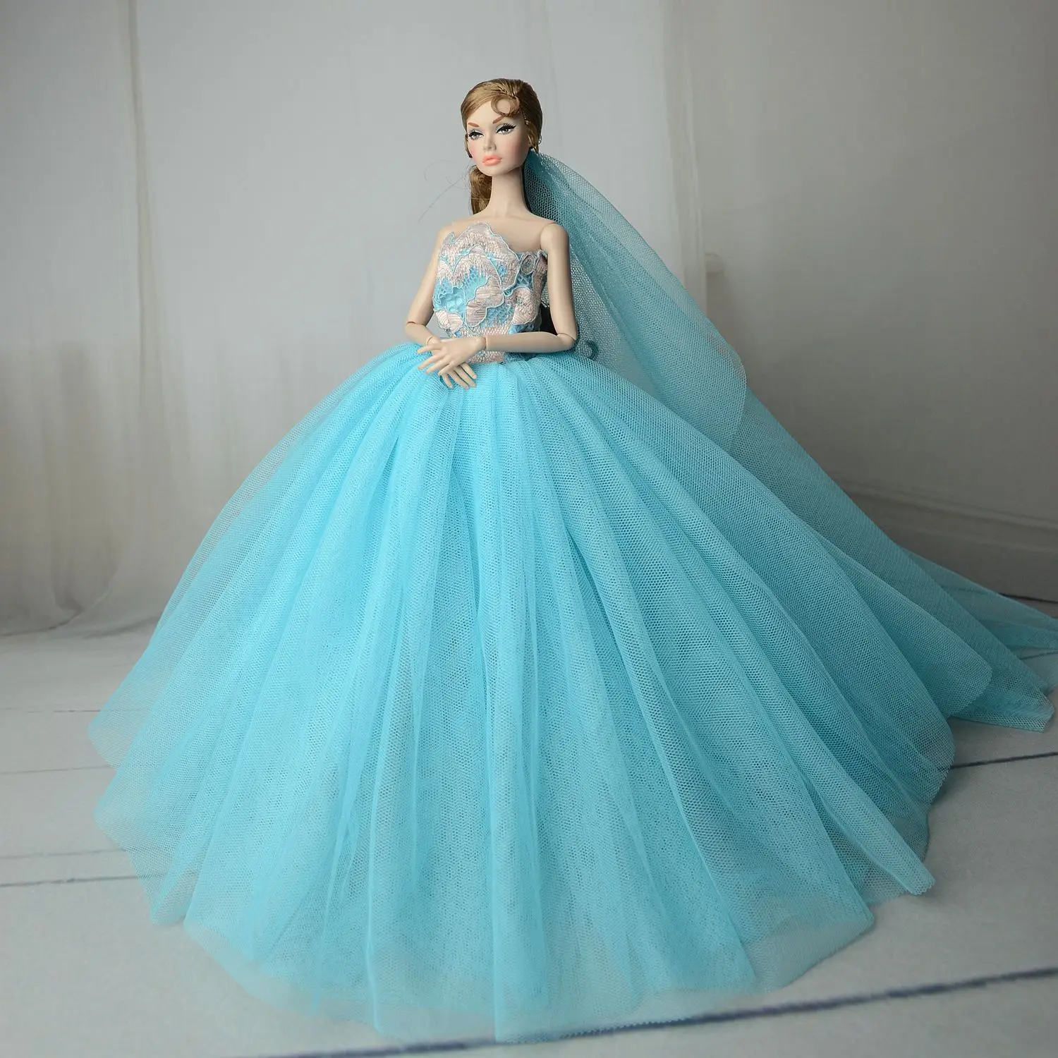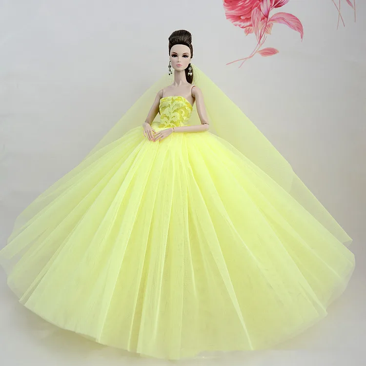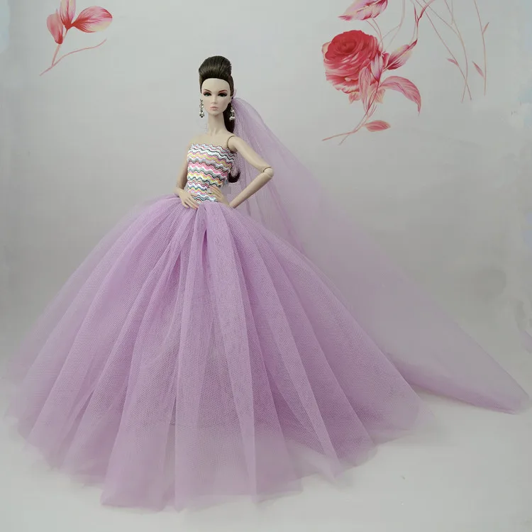 Doll Dress With Veil Quality Lace Party Dress Evening Gown Bubble TUTU Princess Clothing Outfit Accessories For 1/6 Dolls