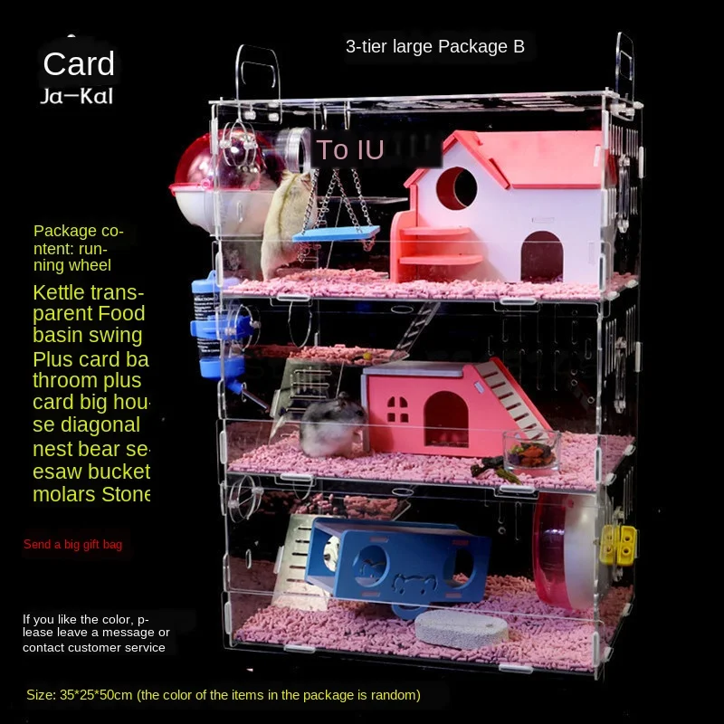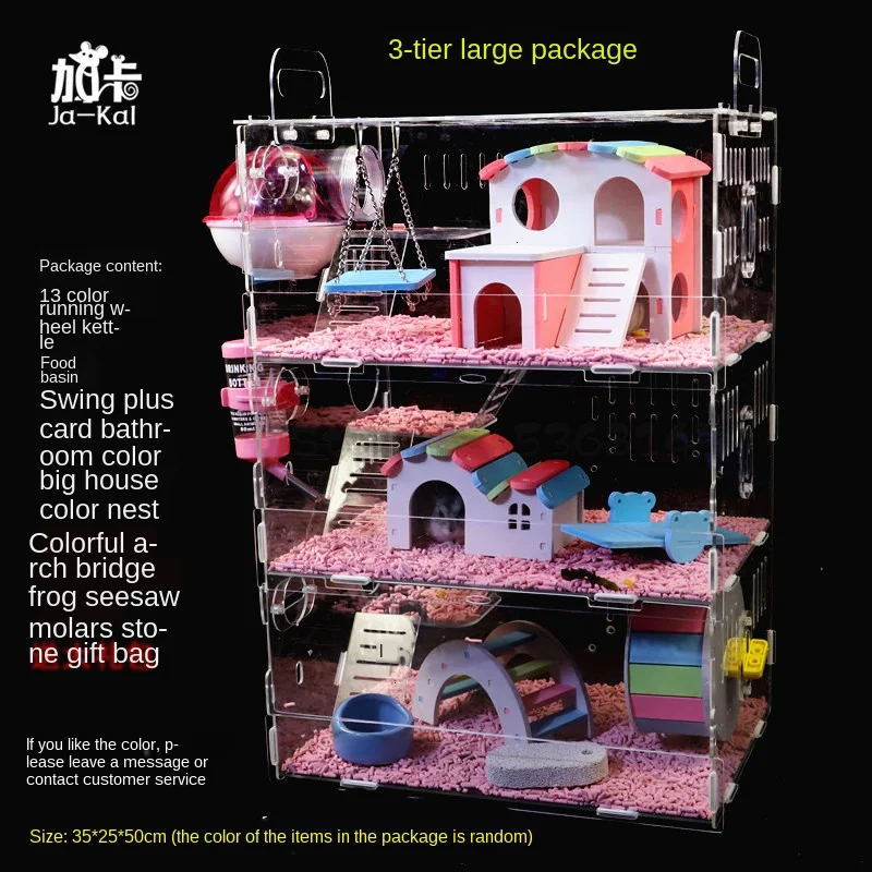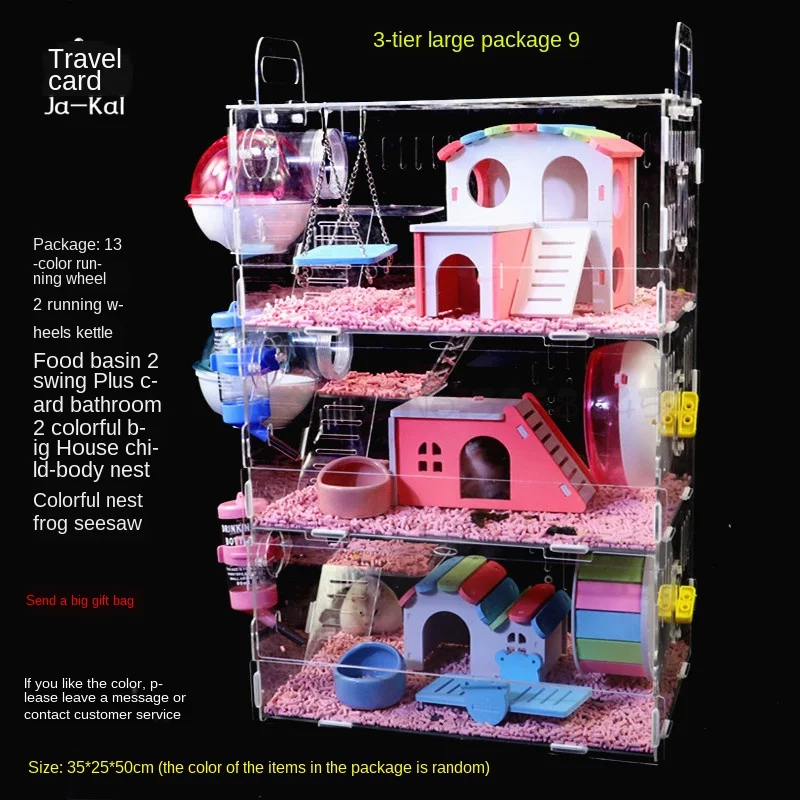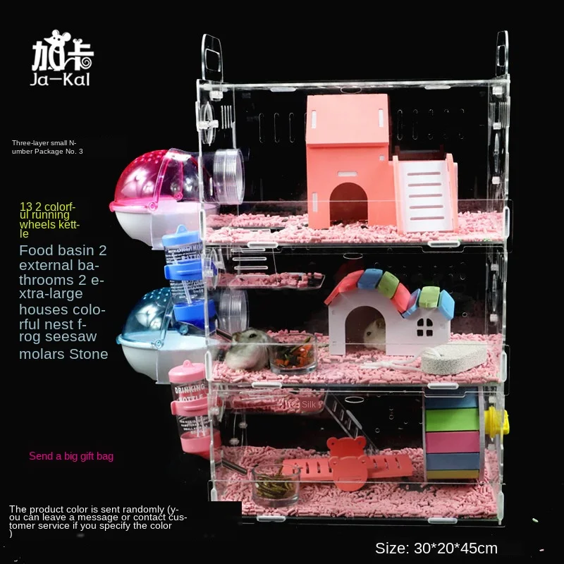 Детская клетка для хомяка, акриловый Золотой медведь, три слоя, супер большая прозрачная вилла, принадлежности, игрушки