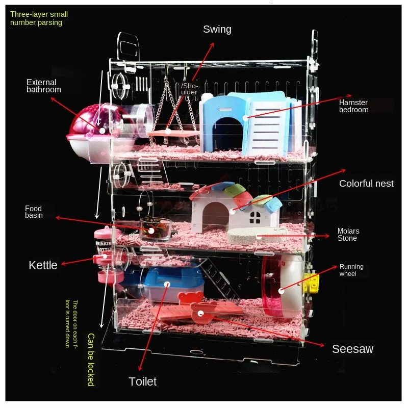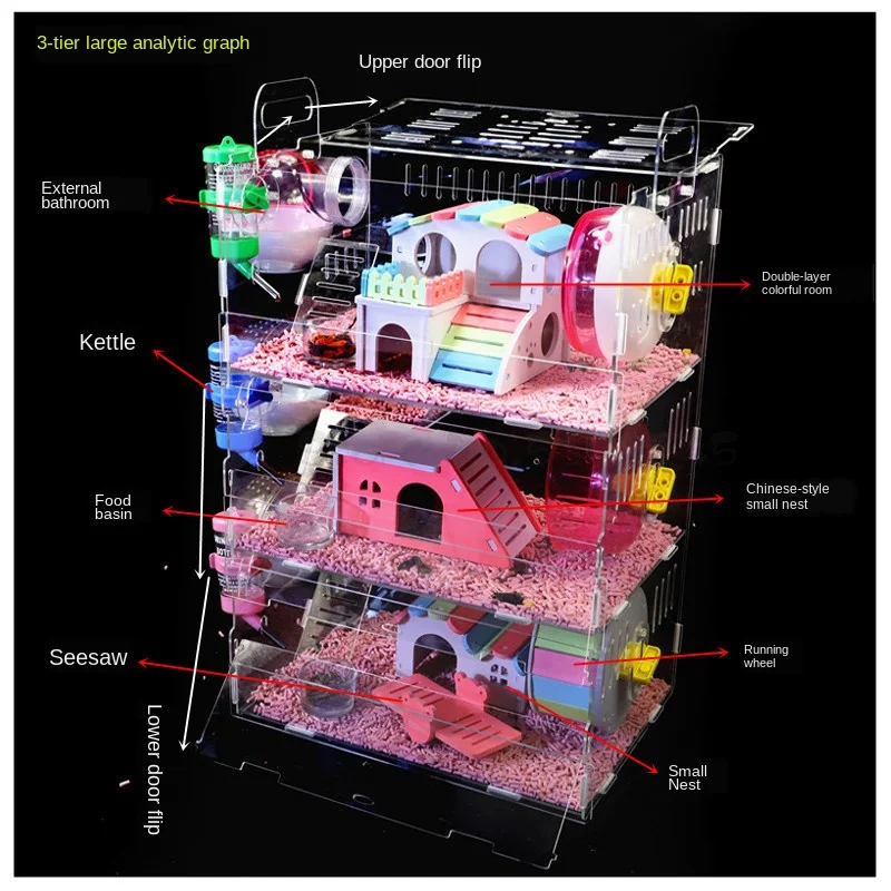 Клетка для хомяка прозрачная акриловая большая вилла маленькая двухслойная Одиночная изолирующая крыса