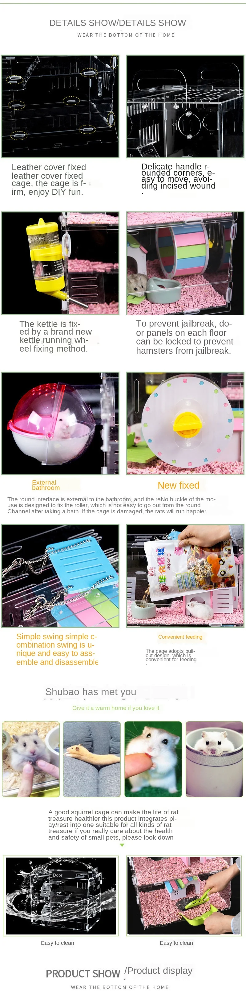 Клетка для хомяков, очень большая вилла для малышей, золотой Шелковый медведь, однослойная двойная Прозрачная основа, принадлежности, игрушки