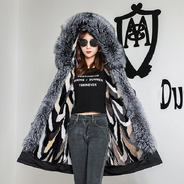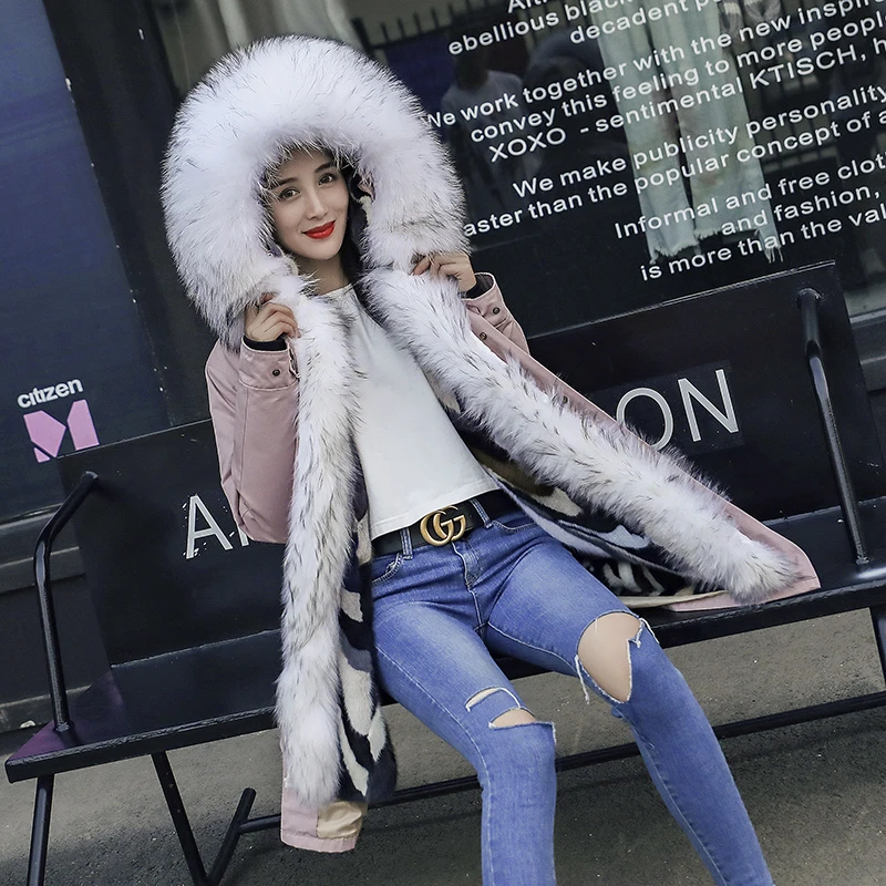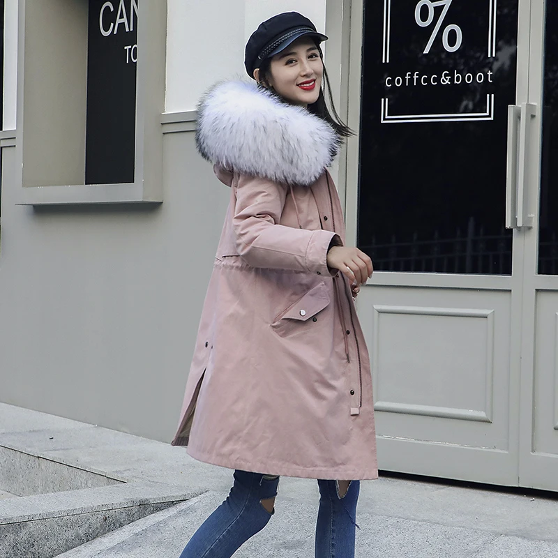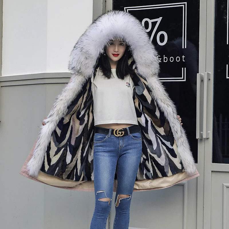 Парка с натуральным мехом; Модная женская парка с большим меховым воротником в Корейском стиле; Длинная куртка со съемной подкладкой из меха норки