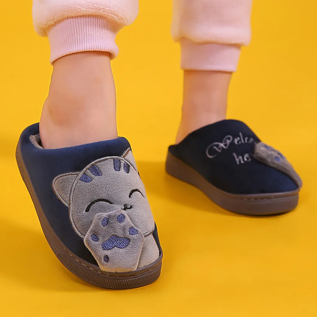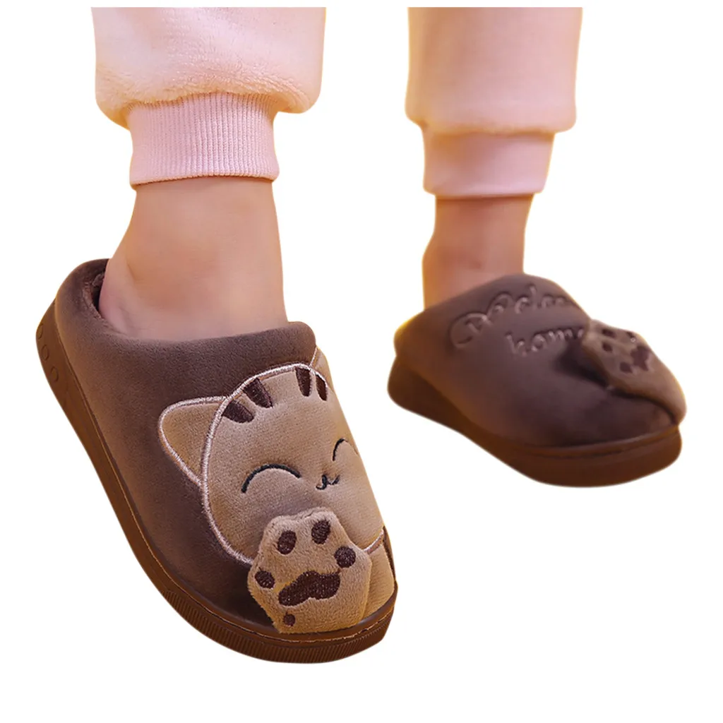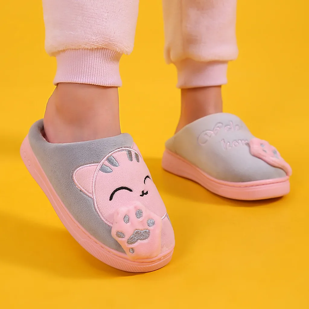 Детские зимние тапочки для маленьких мальчиков и девочек Нескользящие тапочки с рисунком котаДля домаОбувь для дома