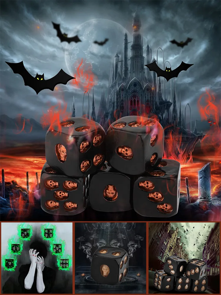 Игральных костей с черепами, 8x8 мм в переменного тока, 50-комплект из двух предметов черный Цвет с черепом для Вечерние игры