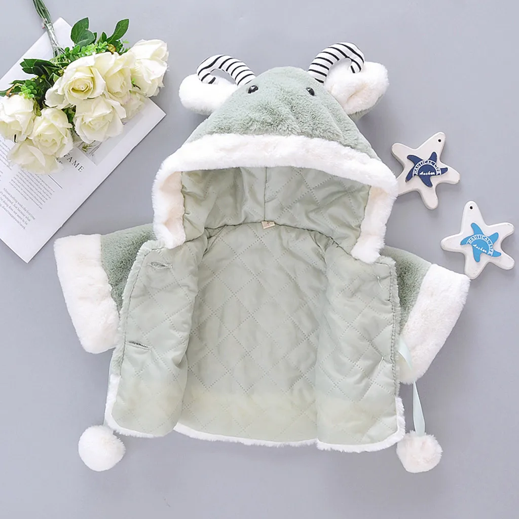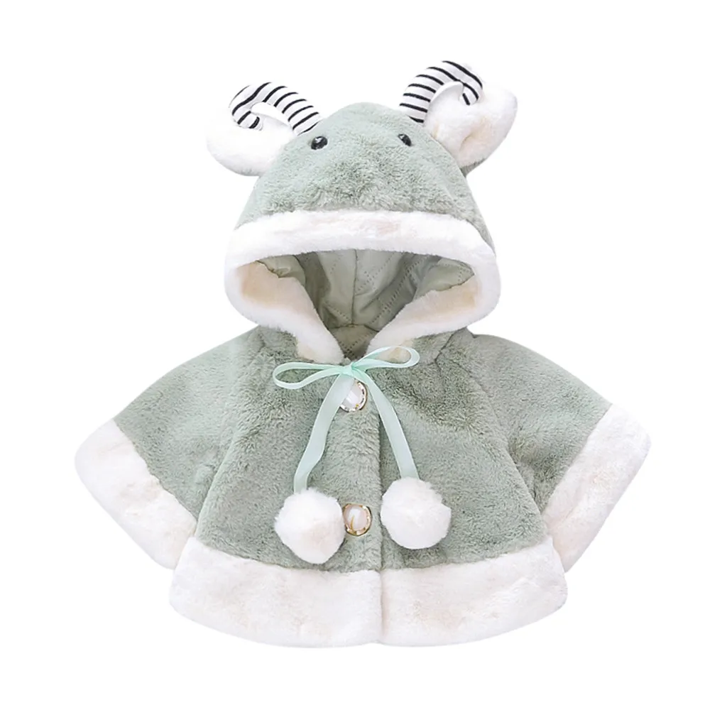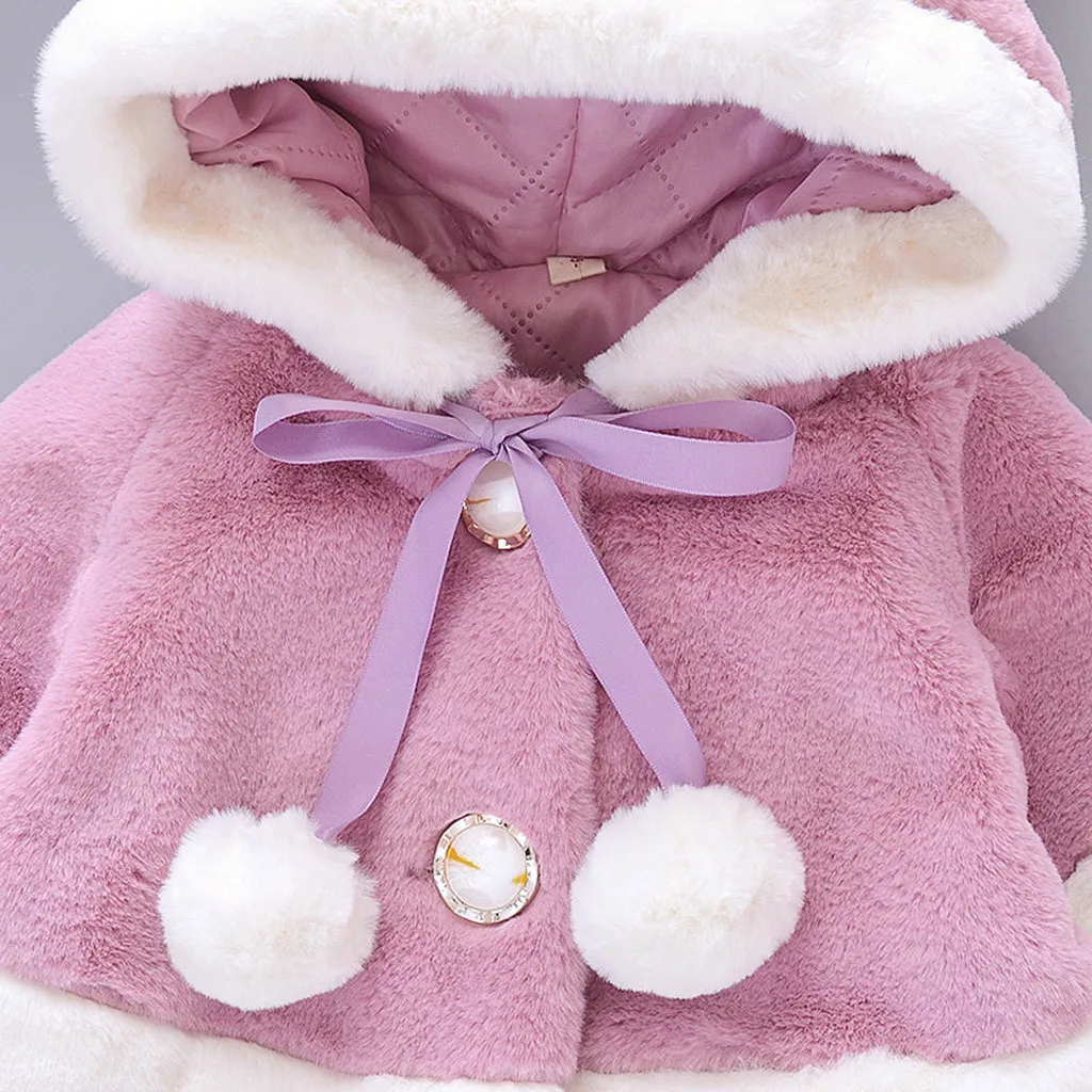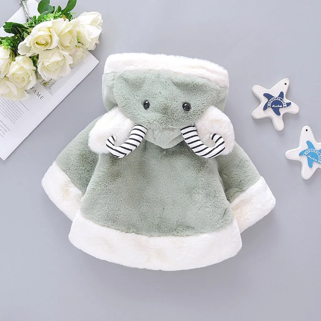 Зимняя накидка из искусственного меха с рисунком для маленьких девочек; Ветрозащитное пальто; Теплый плащ с капюшоном