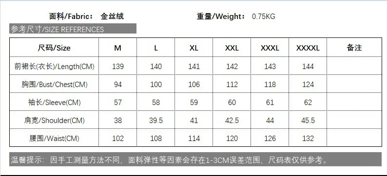 Таблица размеров (ручное измерение, погрешность 1-2 см): Возможна погрешность в 1-2 см из-за ручного измерения Фотографии и тонкая разница в цвете-это нормально, спасибо за понимание Примечание: 1 дюйм = 2,54 см, это китайский Размер, поэтому при заказе, пожалуйста, ознакомьтесь с таблицей размеров! Примечание: этот стиль без хиджаба, хиджаб необходимо приобретать отдельно