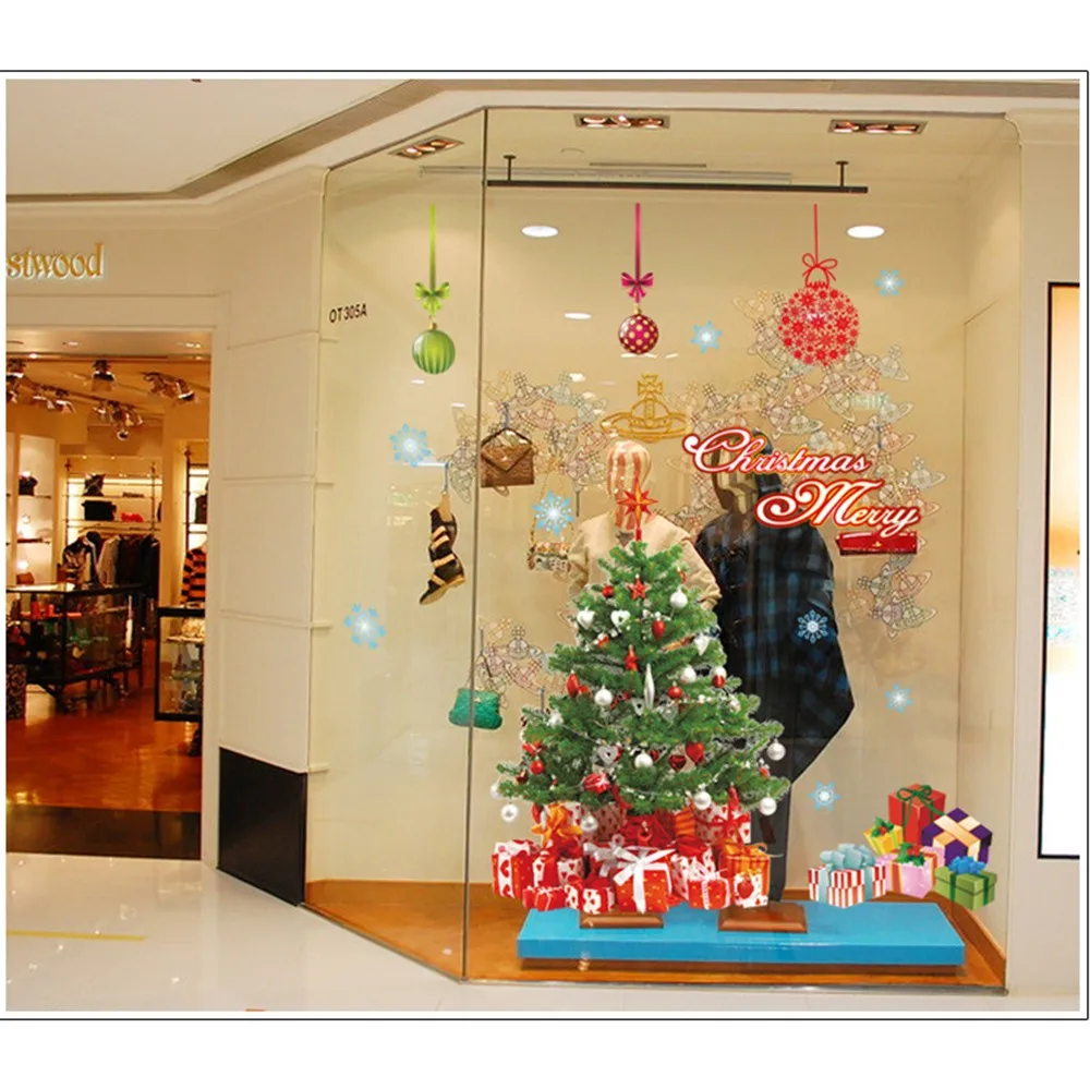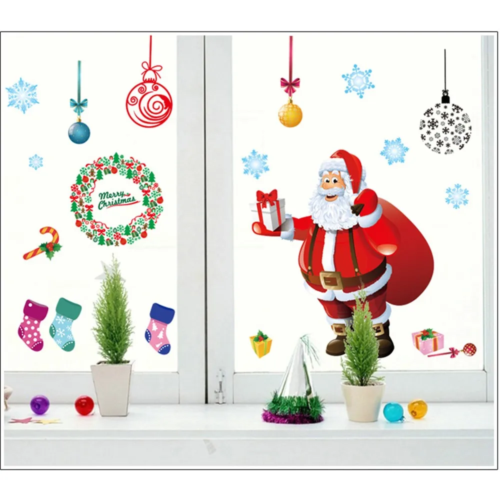 Рождественская Съемная Наклейка на стену украшение на стену стекло украшение на окно