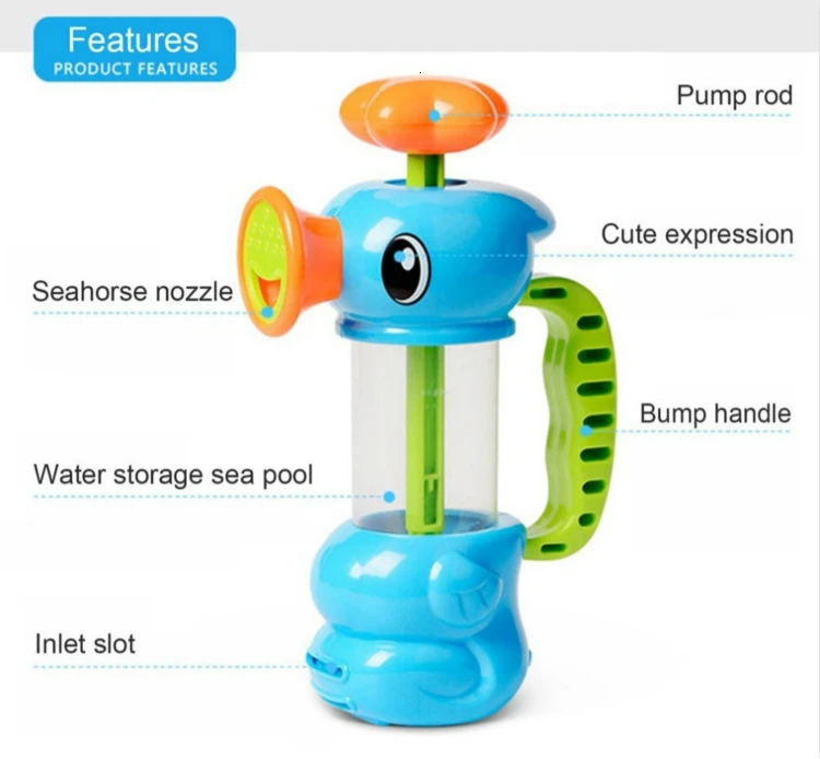 Детские водяные Игрушки для ванны, Детская ванна, бассейн, Душ, ванная комната, ABS, морской конь, спринклер, насос, спрей, смесители для детей, подарок