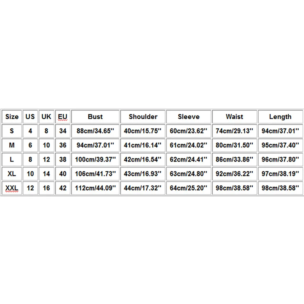 Что вы получаете: 1 женское платьеРазмерыСвяжитесь с намиВеликобританияЕСОбхват грудиСумка на плечоРукаваОбхват талииДлинаS483488 см/34,65''40 см/15,75''60 см/23,62''74 см/29,13''94 см/37,01''М6103694 см/37,01''41 см/16,14''61 см/24,02''80 см/31,50''95 см/37,40''L81238100 см/39,37''42 см/16,54''62 см/24,41''86 см/33,86''96 см/37,80''XL101440106 см/41,73''43 см для ухода за ребенком для мам/16,93''63 см/24,80''92 см/36,22''97 см/38,19''XXL121642112 см/44,09''44 см/17,32''Высота голенища 64 см; 25,20''98 см/38,58''98 см/38,58''
