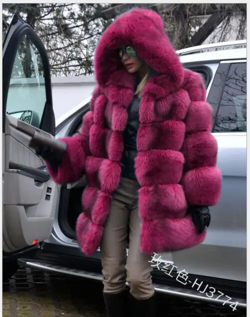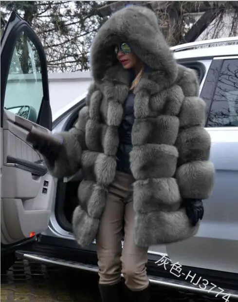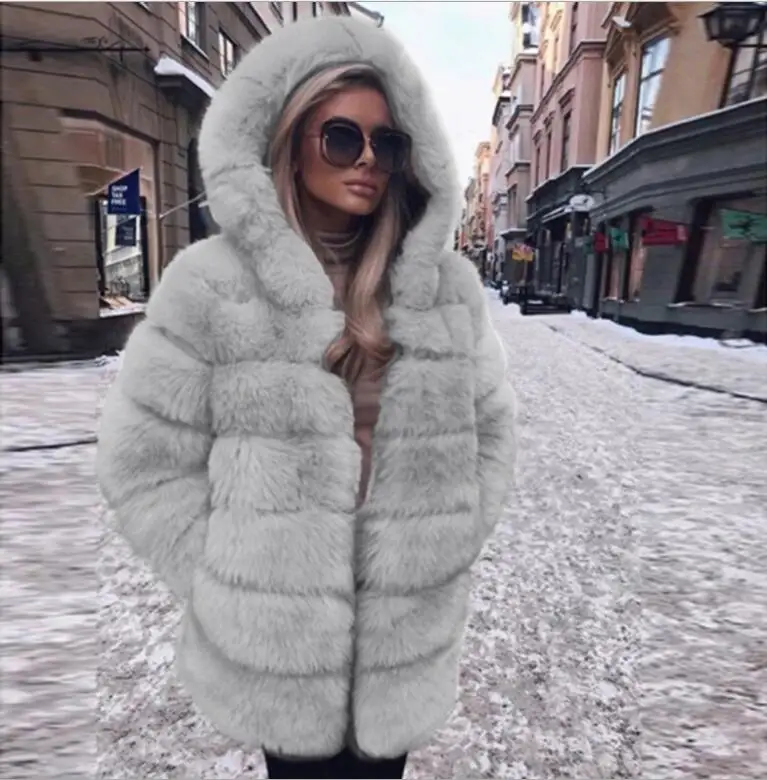Женская зимняя куртка из искусственного кроличьего меха с капюшоном - купить по