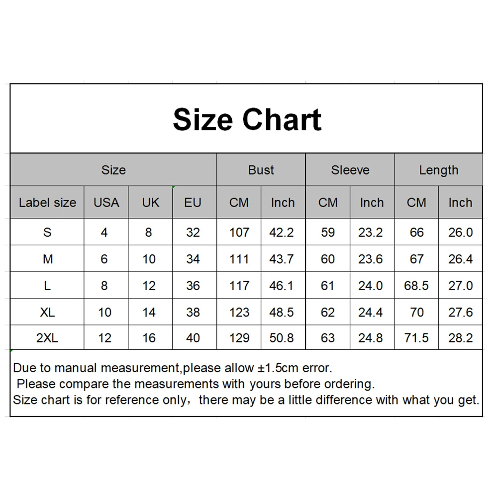 [Наш Размер S] Обхват груди: 107 см/42,13 ", рукав: 59 см/23,23", Длина: 66 см/25,98 "(прибл.)