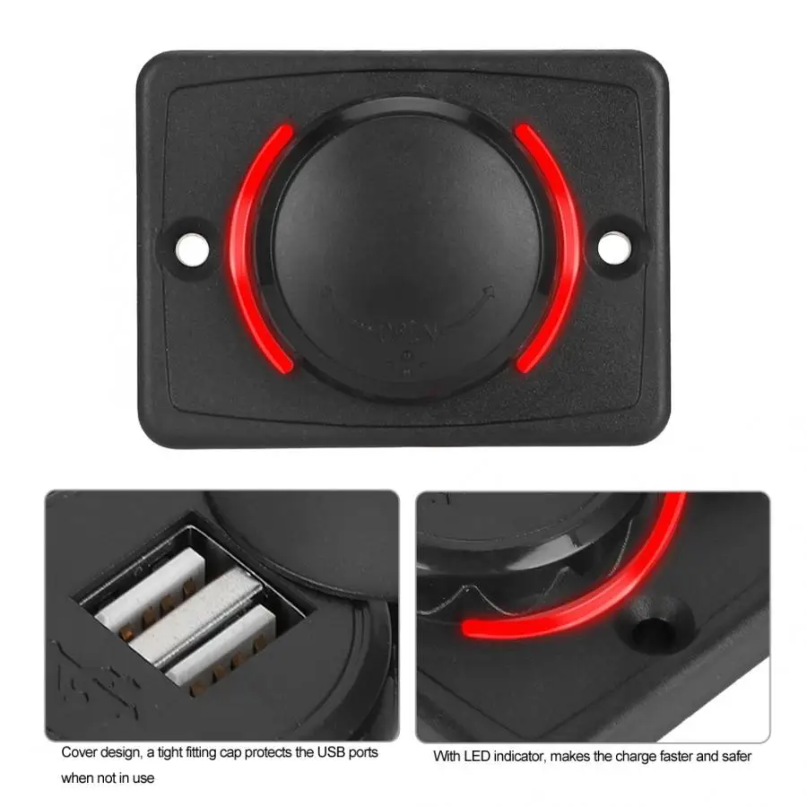 3.1A DC12V/24V черный автомобиля с двумя портами USB Порты и разъёмы Мощность Зарядное устройство розетка с светодиодный