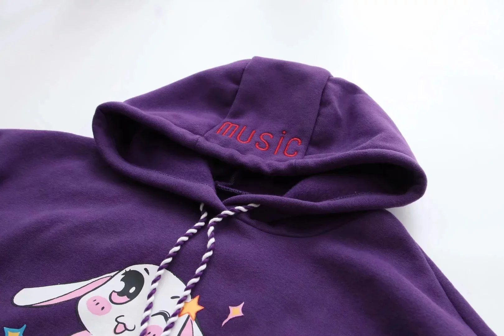 Wynne gadis/осенние женские толстовки с капюшоном и принтом кролика из мультфильма для девочек, свободные свитера с длинными рукавами для девочек и японских Мори