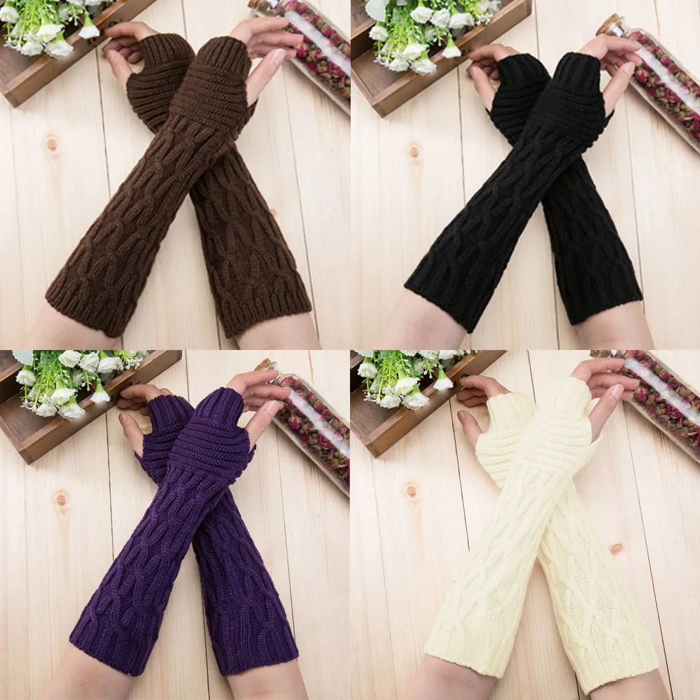 Модные женские зимние наручные руки Теплые вязаные длинные перчатки без пальцев