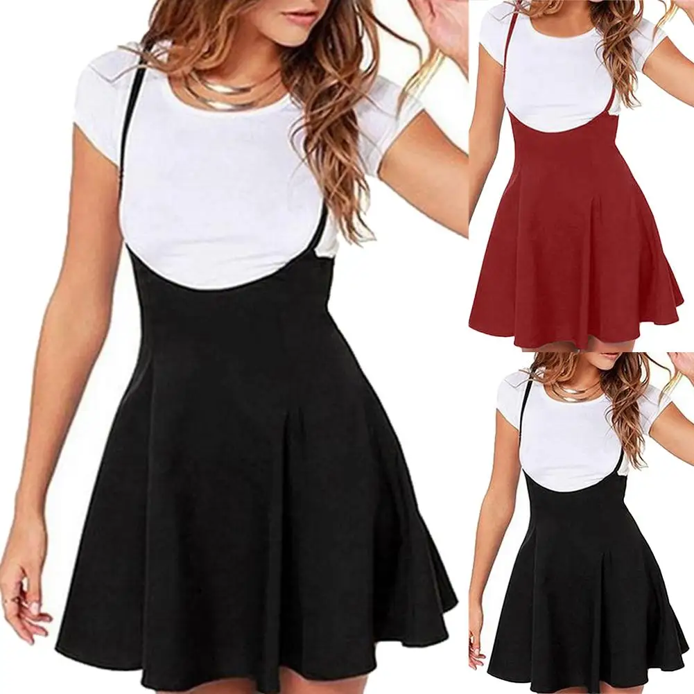 Женская однотонная плиссированная мини-юбка на бретельках