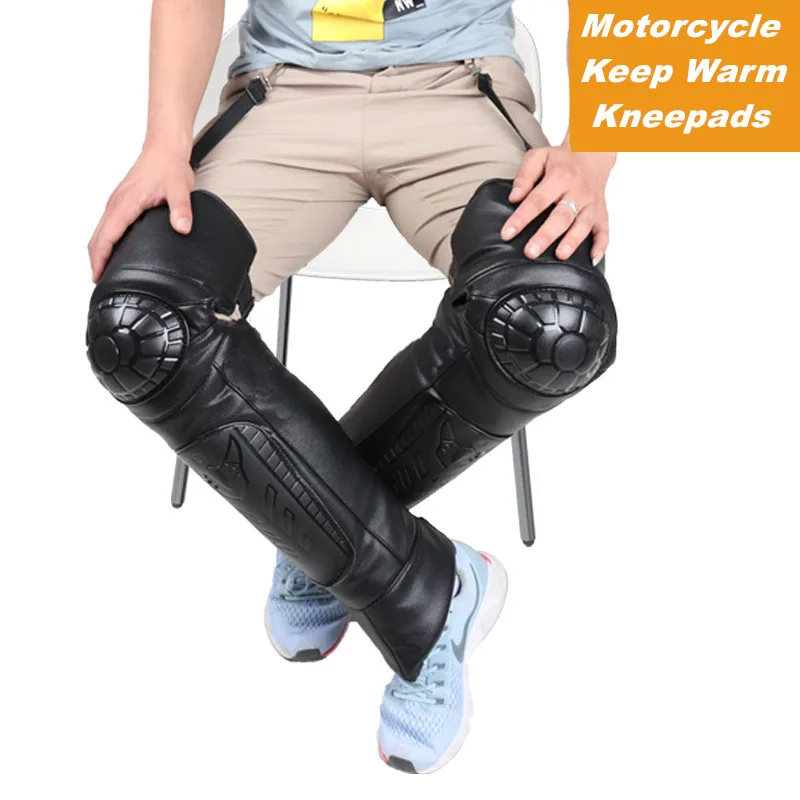Наколенники для мотоциклистов, зимние наколенники для мотоциклистов, защитная защита для занятий спортом на открытом воздухе, водонепроницаемая искусственная кожа + шерстяная подкладка