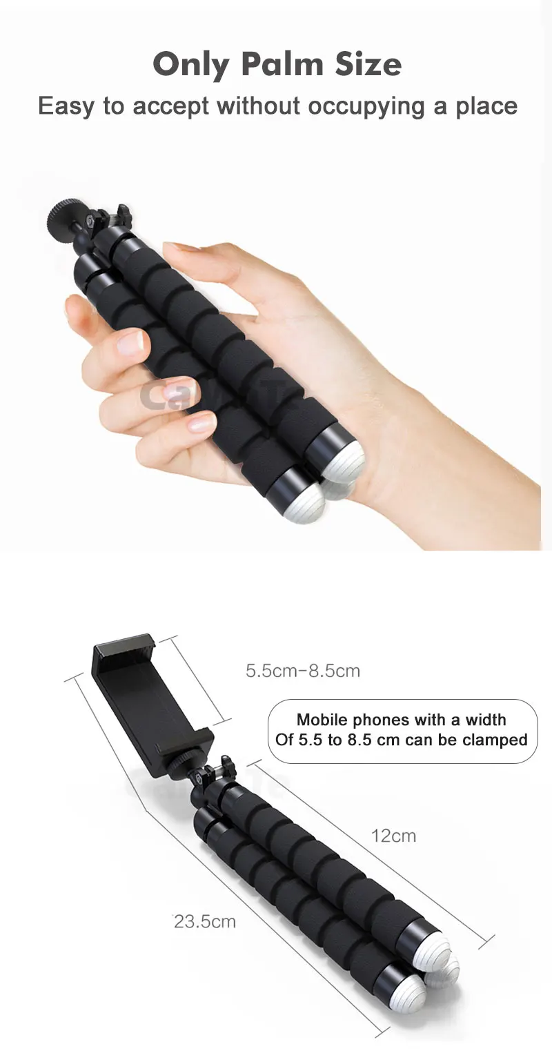 1. Полная гибкость, изготовлен из жесткого пластика 2. Серые Прорезиненные кольца, ножки и соединительная Подушка 3. Крепежные винты для соединения в большинство размеров цифровой камеры и съемные 4. Съемное соединение с кнопкой блокировки 5. Позволяет ему выровнять камеру на самых неровных поверхностях 6. Вес: 70 г 7. Размер: 150x35x35 мм 8. Товар может поддерживать максимум 275 г 9. Цвет: черный/синий/красный