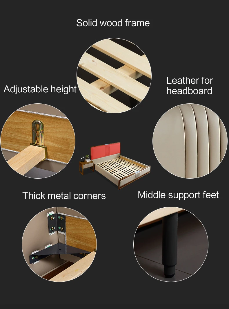 Материалы: рама из цельного дерева, Высококачественная губка, кожа. Материал кровати, к которой можно прикоснуться,-это кожа. Размер: 150x200 см, 180x200 см.