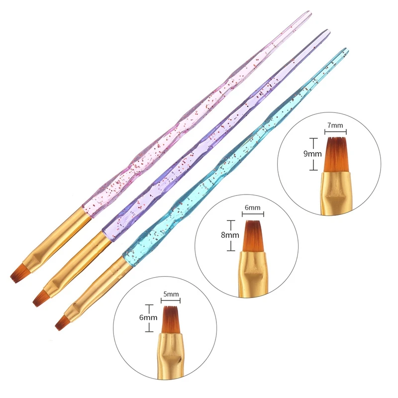 Характеристики: Материал: пластик + волокно Ручка: кристалл форма ручки: круглая головка и мира Размер головки: прибл. 17,50*3,00*1,00 см Вес нетто: около 18 г особенность: долговечность для более длительного использования. Без искажений и не ржавеет, прочный для более длительного использования. Легкая ручка и управление, поможет вам создать красоты ногтей изображения. Сплав и акриловый материал, отличная отделка. Посылка Содержание: 3 шт./компл. ногтей кисть