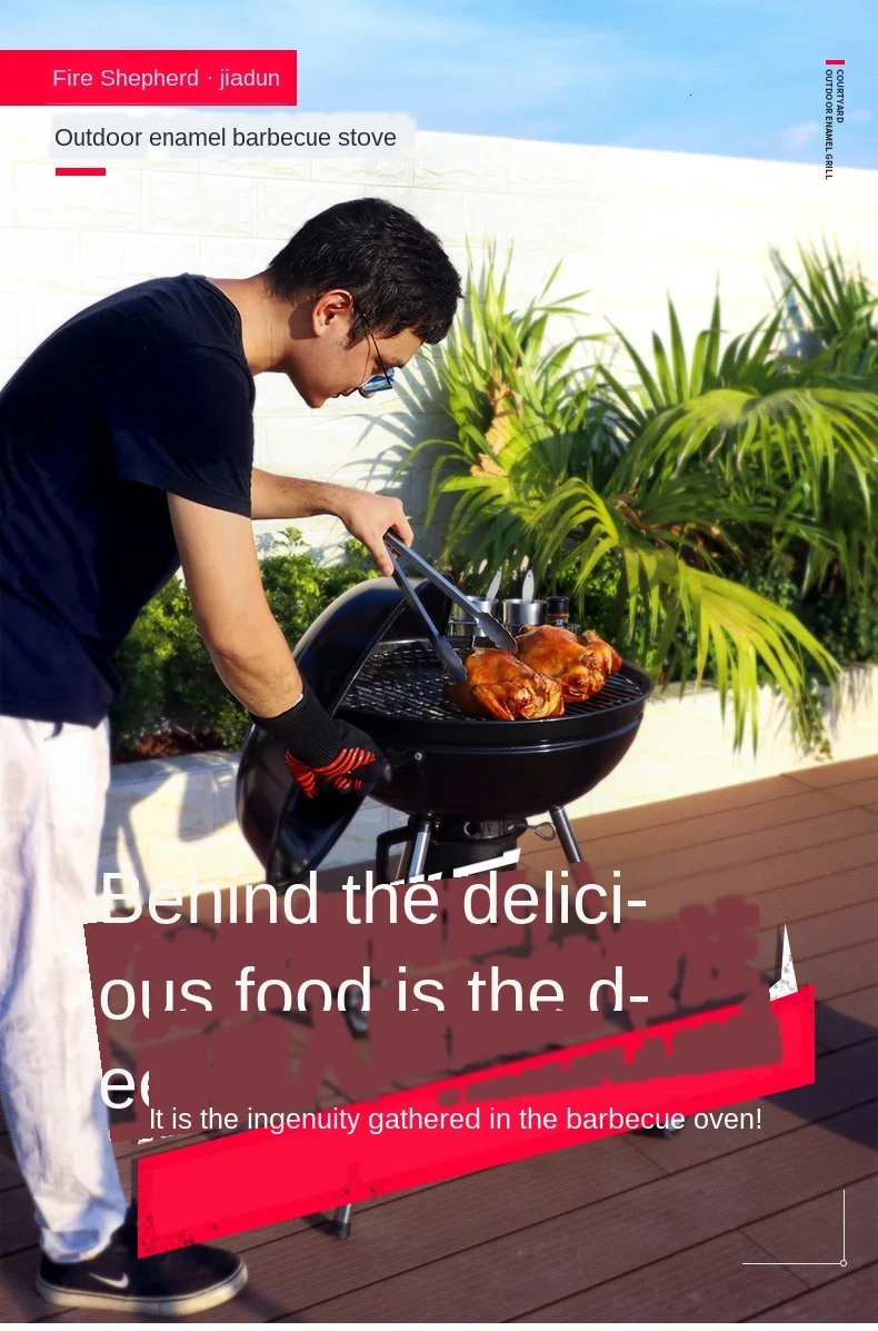 Огненная овчарка двора вилла Открытый барбекю печь с более чем 5 человек домашний древесный уголь тушеная барбекю американская стойка для барбекю круглый полностью покрытый эмалью большая емкость тушеная и запеченная с колесами подходит для террасы во дворе
