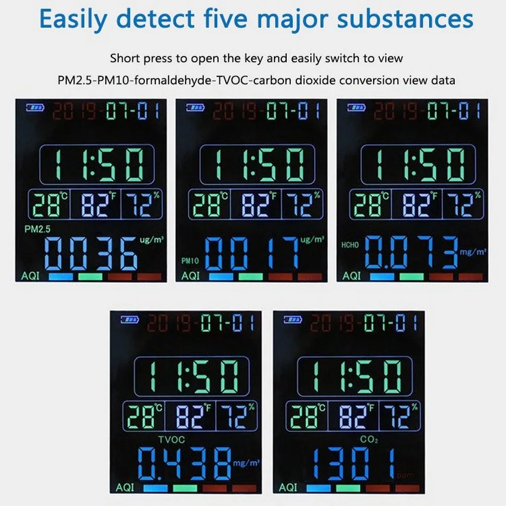 Функция тестирования: HCHO/TVOC/CO2/PM2.5/PM10/монитор качества воздуха/температура/Влажность
