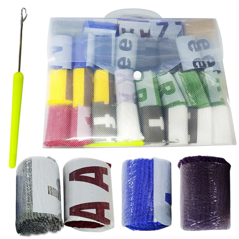 Набор содержит предварительно штампованные холсты, пряжу предварительного кроя, иглу крючка и инструкции.
