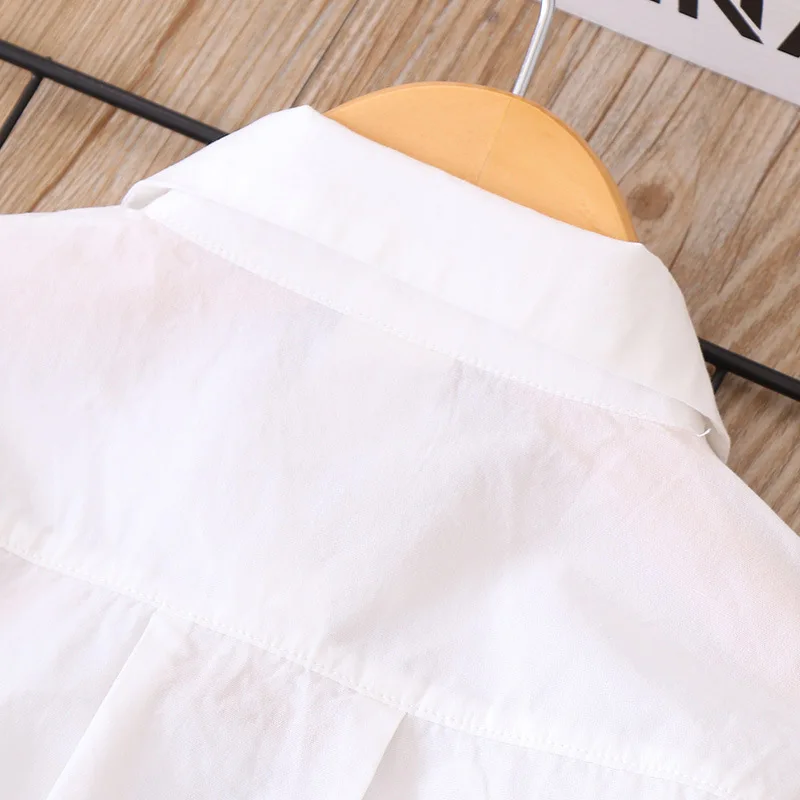 Комплект детской одежды из 3 предметов белая рубашка + джинсы ремень весна 2021 |