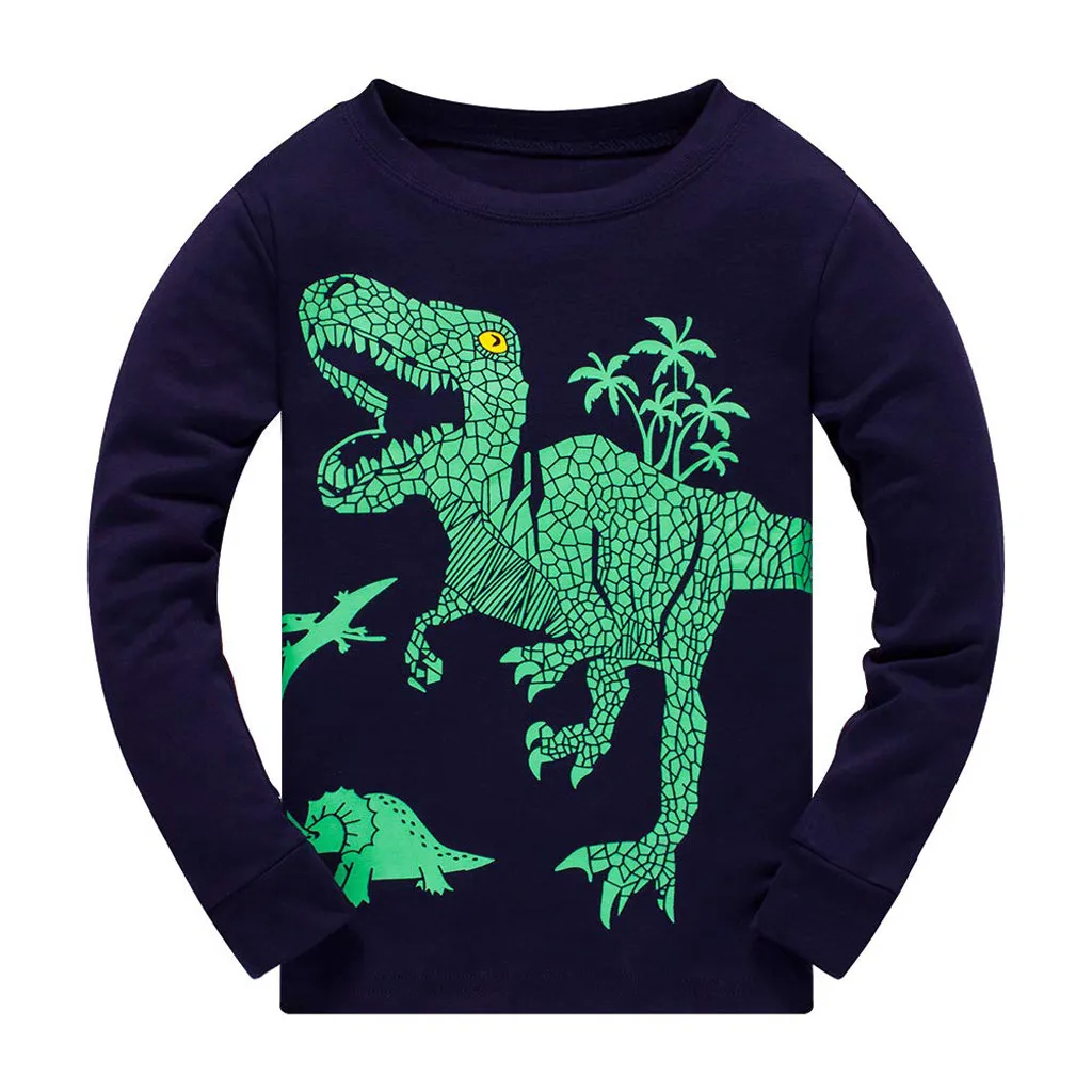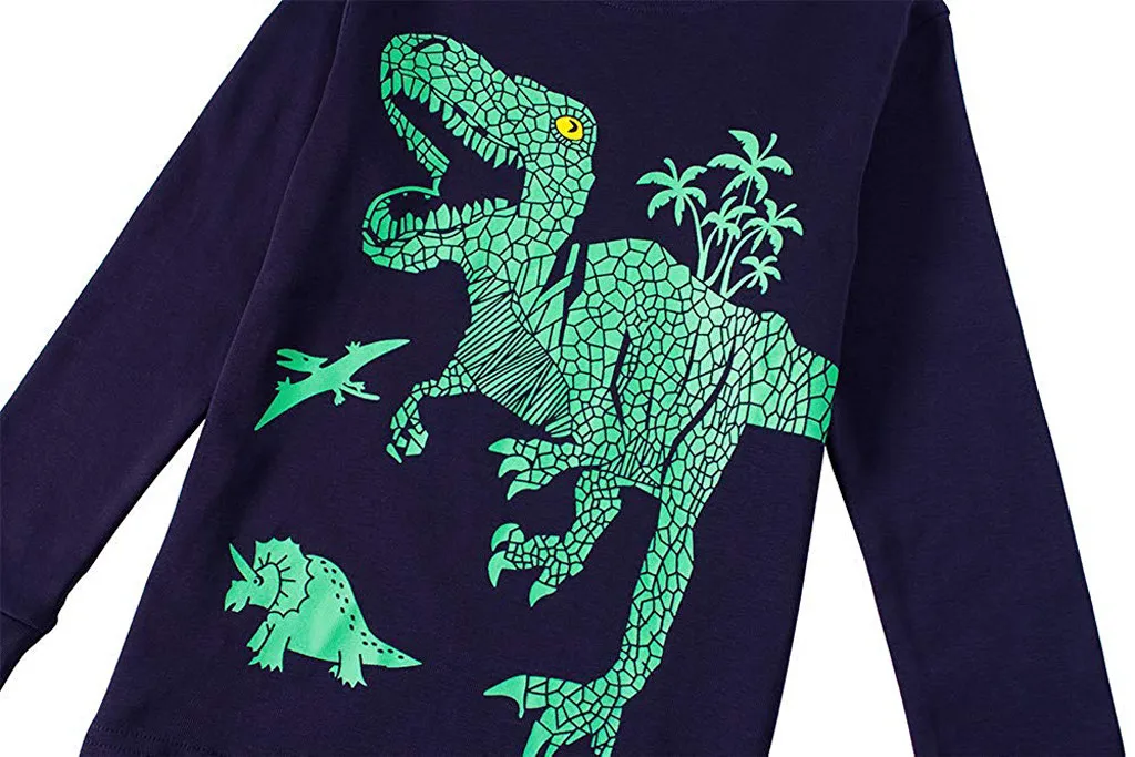 Детская футболка с рисунком динозавра для маленьких мальчиков Топ + штаны, пижама, комплект одежды для сна