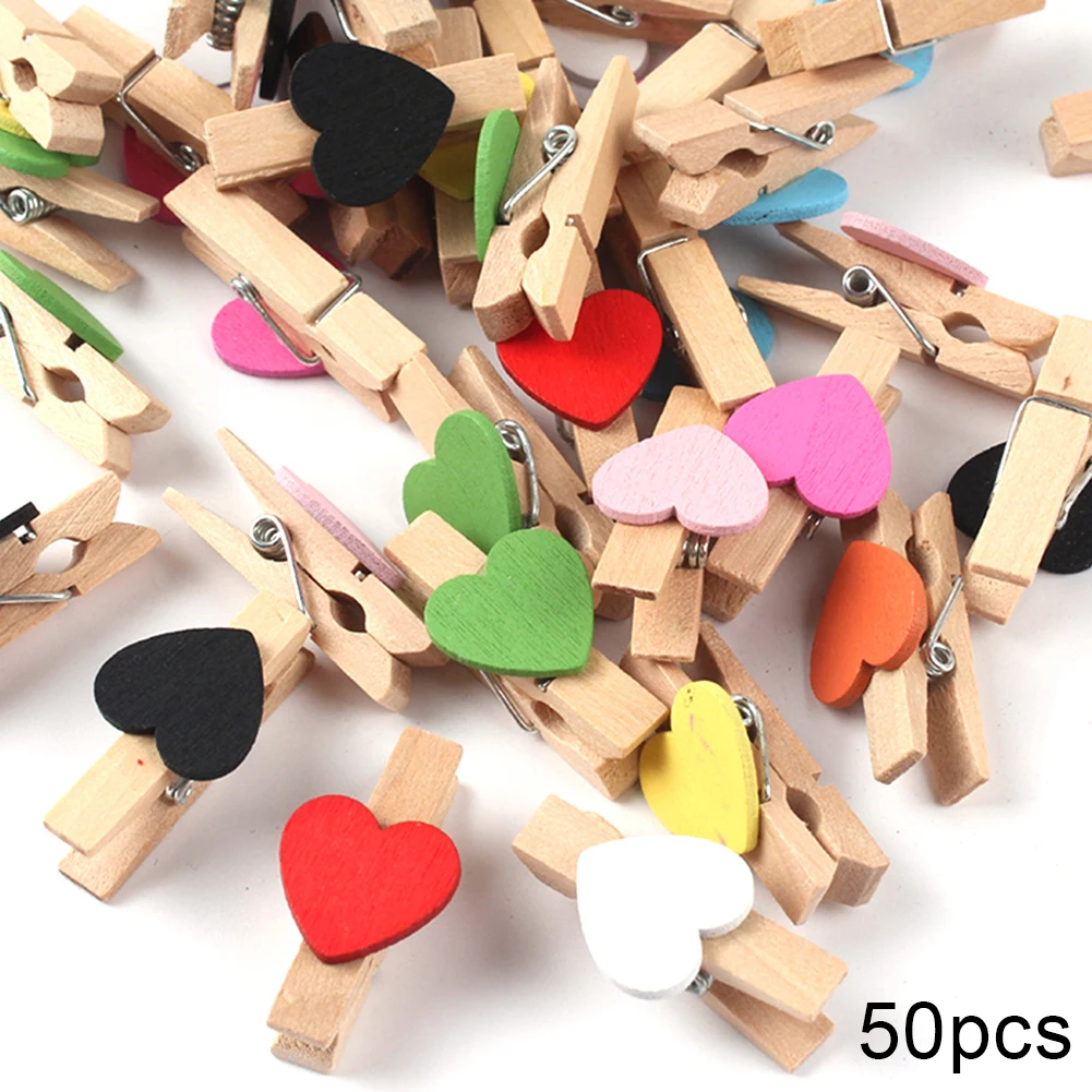 50 шт Сердце деревянная прищепка для фото бумага Peg Pin ремесло открытка зажим домашний декор