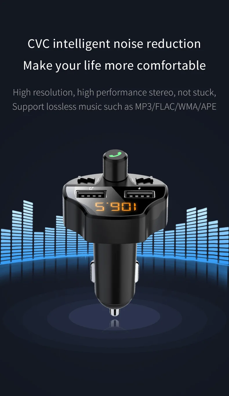 Автомобильное зарядное устройство с двумя usb-портами, fm-передатчик, Беспроводная связь Bluetooth, fm-модулятор, автомобильное зарядное устройство для телефона, автомобильный mp3-плеер