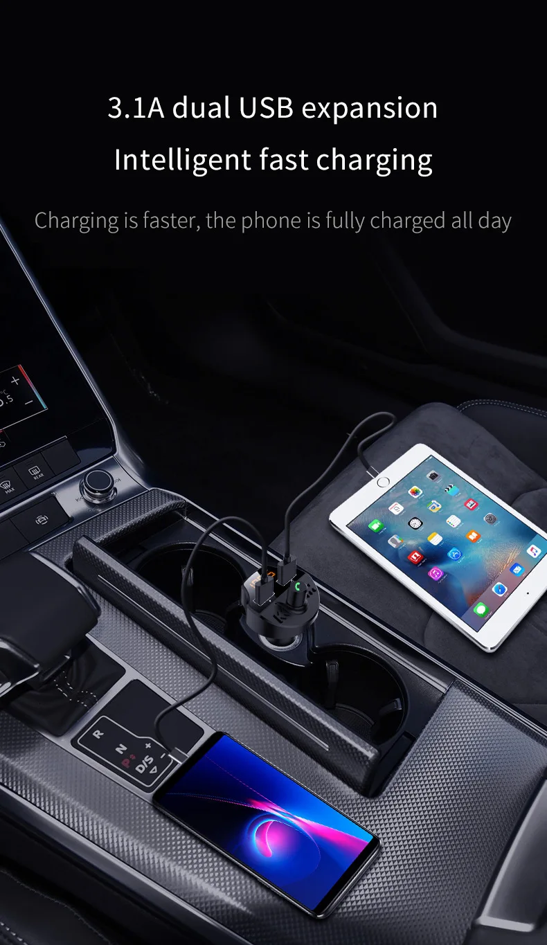 Двойной выход USB 5 В/3,1 а предназначен для зарядки iPod, iPhone, iPad и других устройств.