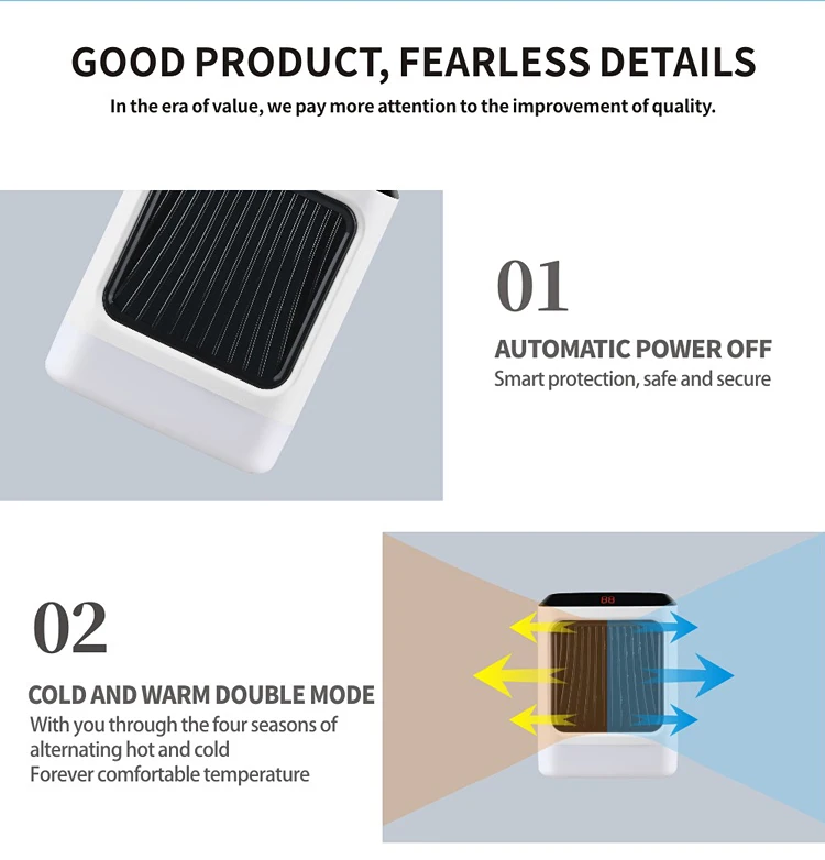Благодаря керамике PTC он может быстро и широко нагревать окружающий воздух и производить мягкий горячий воздух, не потребляя кислорода.