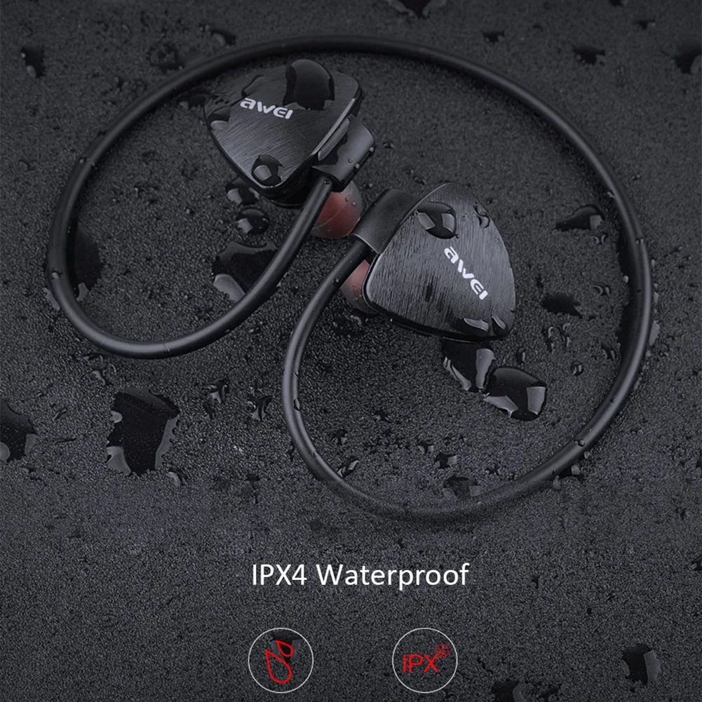 AWEI водонепроницаемые bluetooth наушники спортивные беспроводные наушники для бега стерео бас гарнитура с микрофоном для телефона iPhone наушники