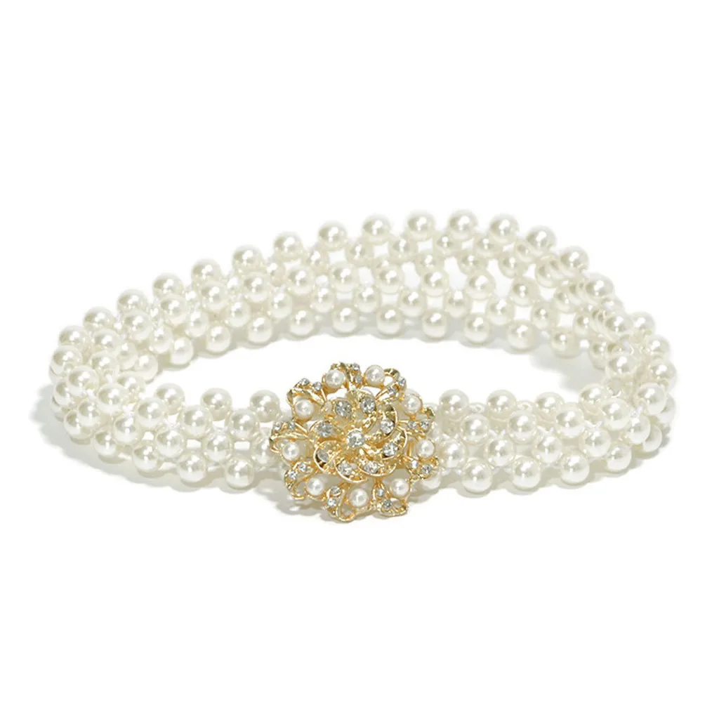 Элегантный женский пояс, жемчужные стразы, пояс с цветами, эластичная Пряжка, пояс с цепочкой, платье, украшенный кристаллами, пояс pasek damski # H