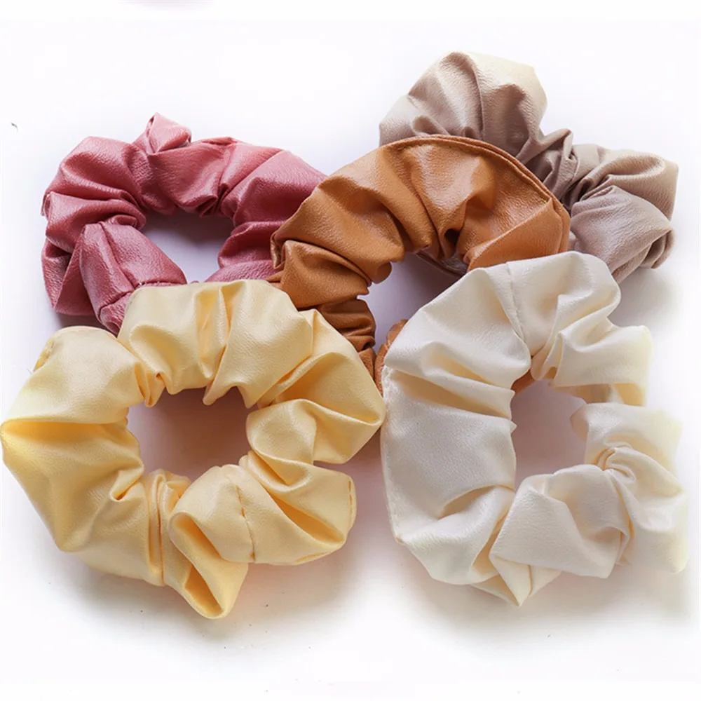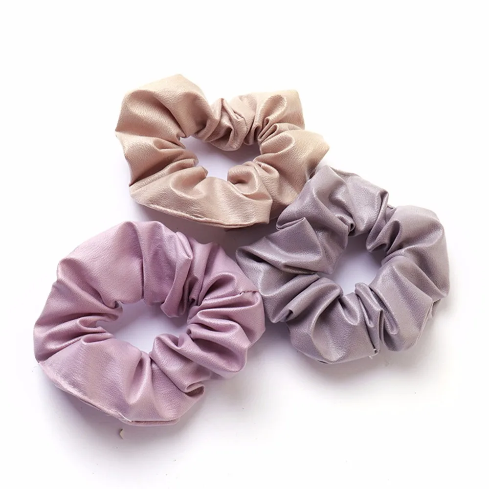 Новые креативные однотонные Кольца для волос из искусственной кожи, женские галстуки для волос ярких цветов, аксессуары для волос, резинка для волос