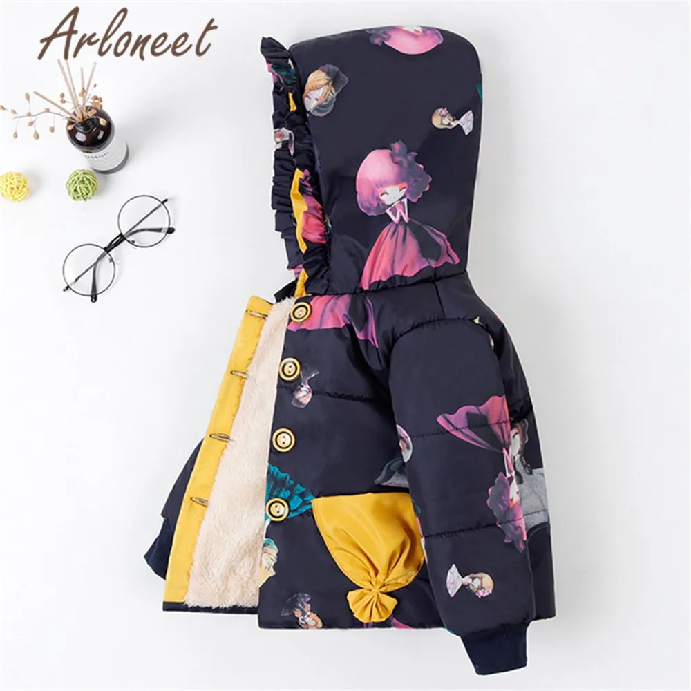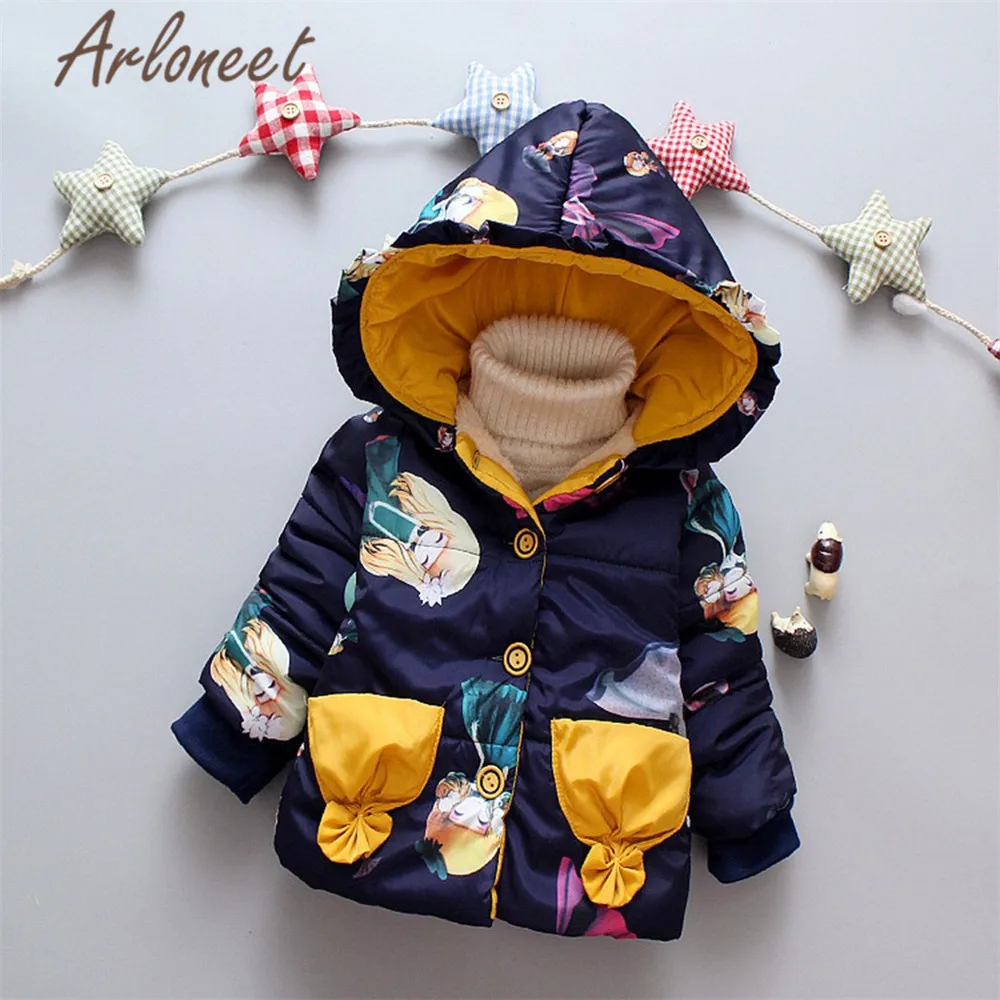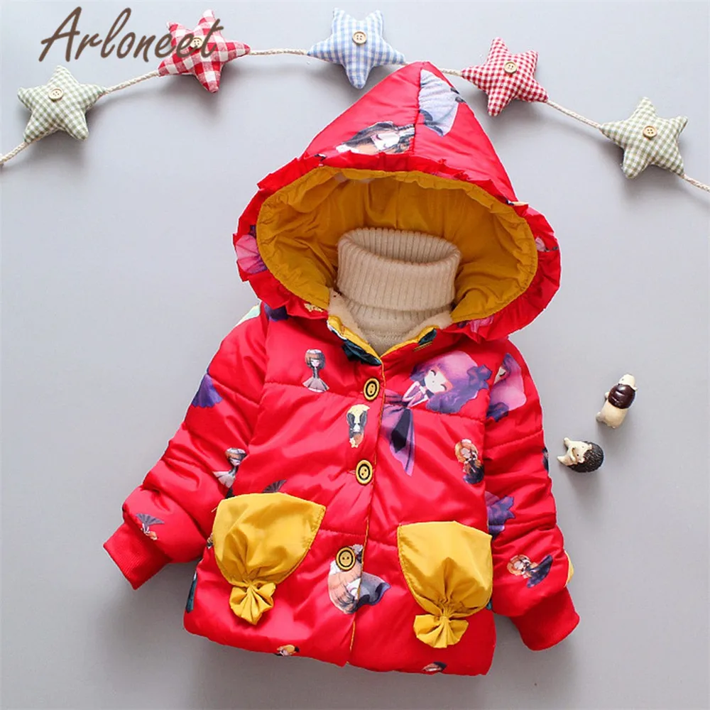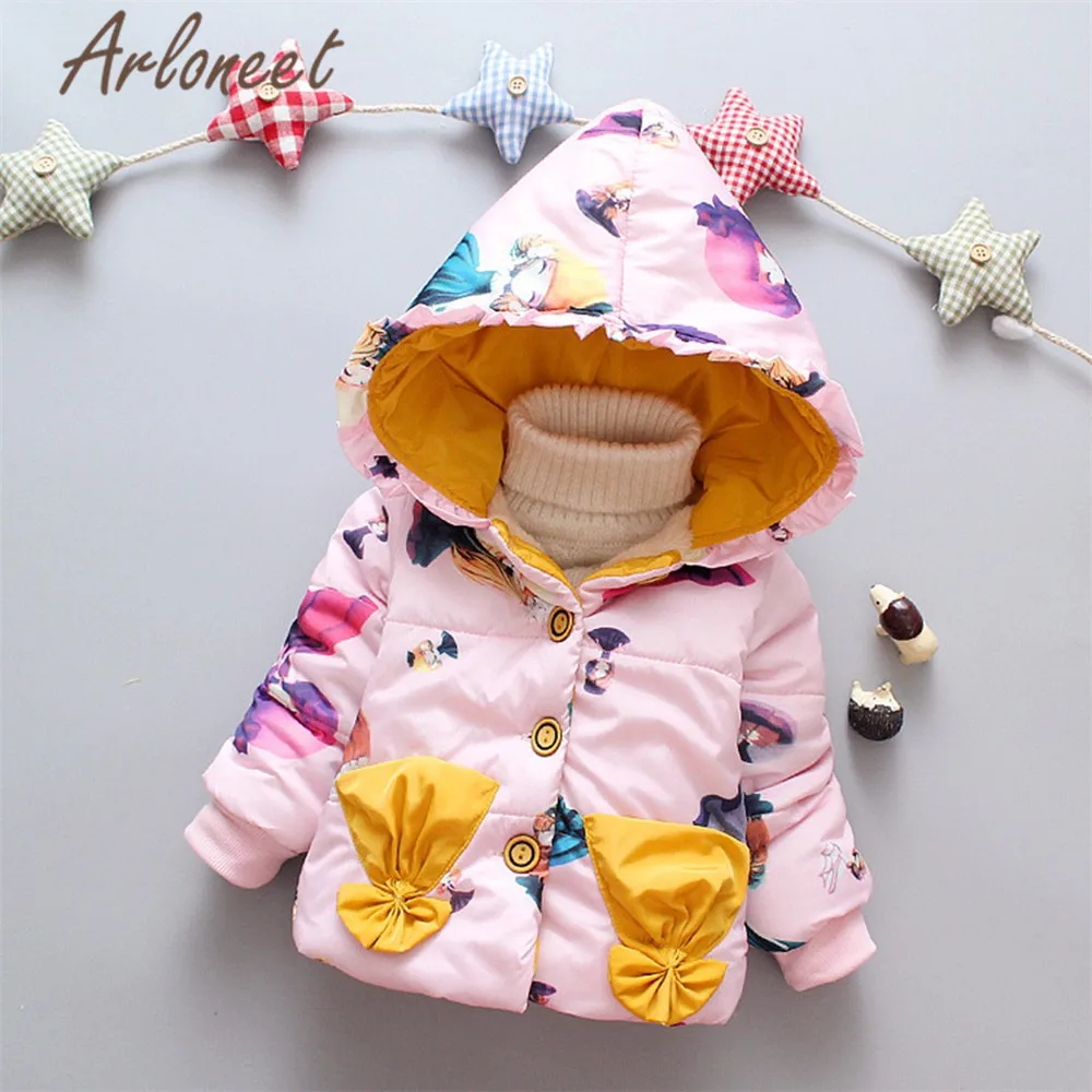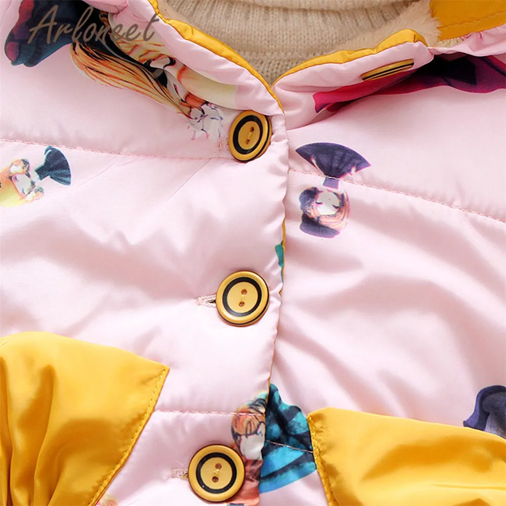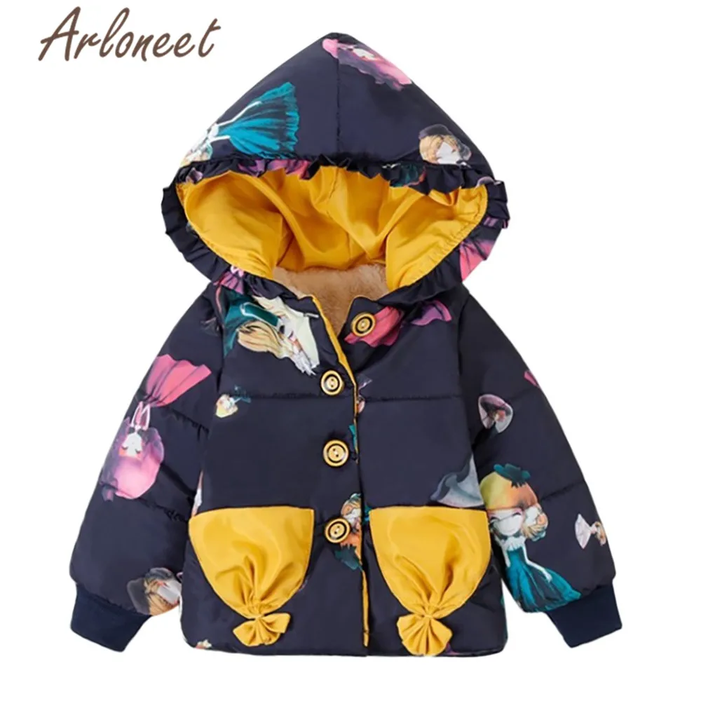 ARLONEET Детское пальто с мультяшным рисунком, теплое зимнее толстое пальто, верхняя одежда с капюшоном на пуговицах, Детская парка, пальто для новорожденных, верхняя одежда для девочек