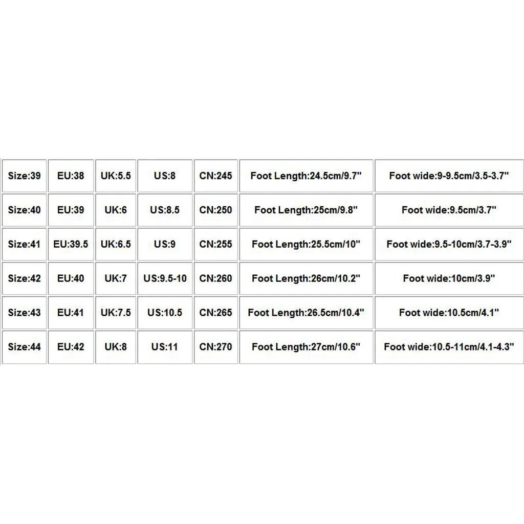 Размер ЕС Великобритания США CN Длина стопы Широкая стопа 39 38 5,5 8 245 24,5 см/9,7 дюйма 9-9,5 см/3,5-3,7 дюйма 40 39 6 8,5 250 25 см/9,8 дюйма 9,5 см/3,7 дюйма 41 39,5 6,5 9 255 25,5 см/10" 9,5-10 см/3,7-3,9 дюйма 42 40 7 9,5-10 260 26 см/10,2 дюйма 10 см/3,9" 43 41 7,5 10,5 265 26,5 см/10,4 дюйма 10,5 см/4,1 дюйма 44 42 8 11 270 27 см/10,6" 10,5-11 см/4,1-4,3 дюйма