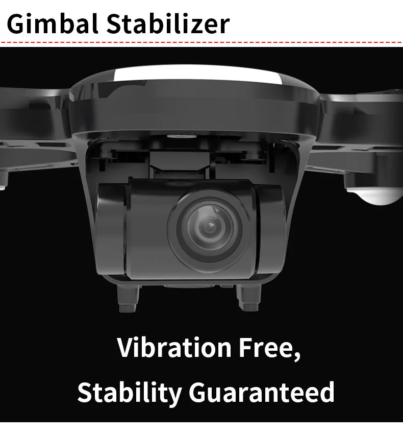 3.1080P HD Camera Gimbal. It is equipped with 1080P camera, tuned amazingly to capture pictures and videos from the sky, also with two-axis brushless gimbal,The drone automatically adjusts its camera angle to show the best possible shooting angle. helping the drone record vibration-free footages.
