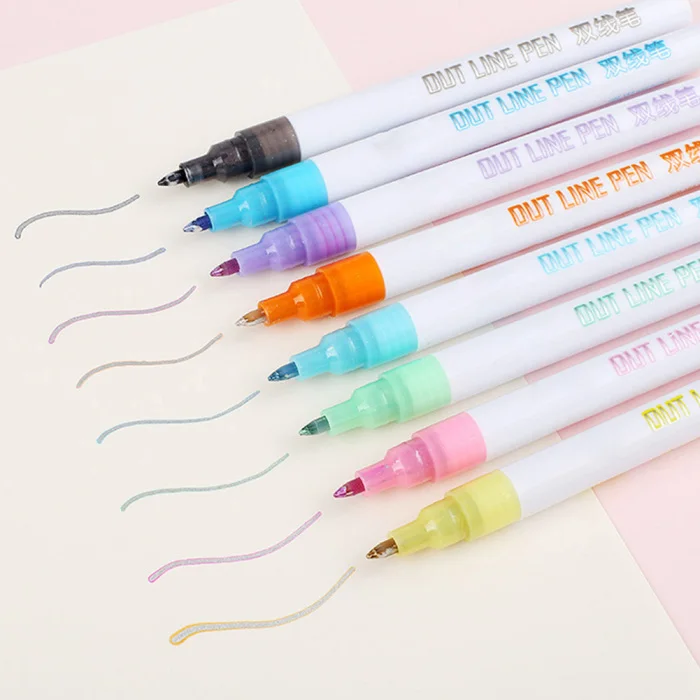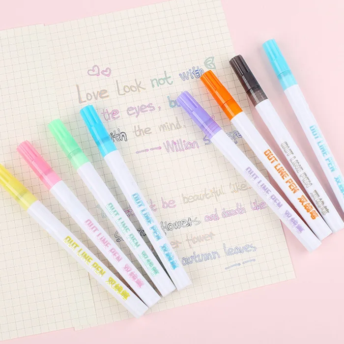 8 шт. Флуоресцентные Ручки двойная линия контурный цветной маркер ручка для письма рисования VDX99