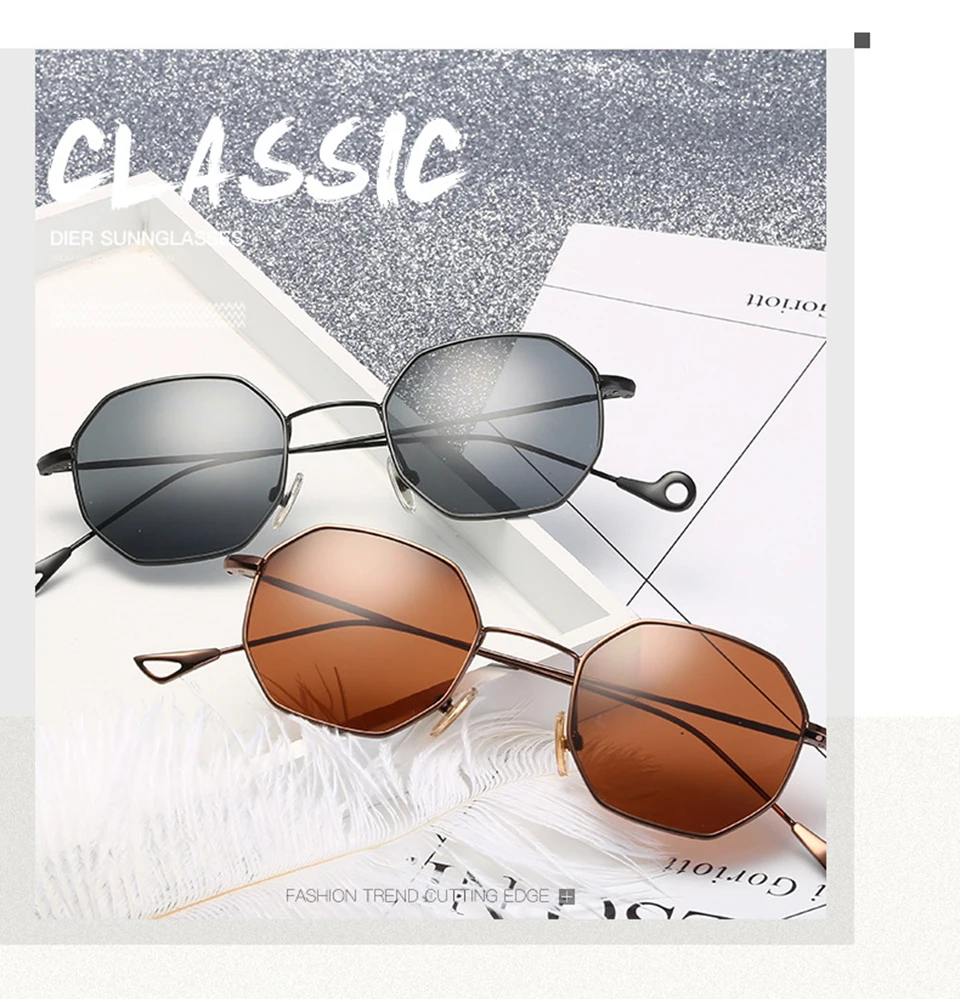 Стимпанк многоугольная форма Солнцезащитные очки для женщин и мужчин винтажные Роскошные брендовые дизайнерские прозрачные линзы солнцезащитные очки шестиугольная металлическая оправа очки