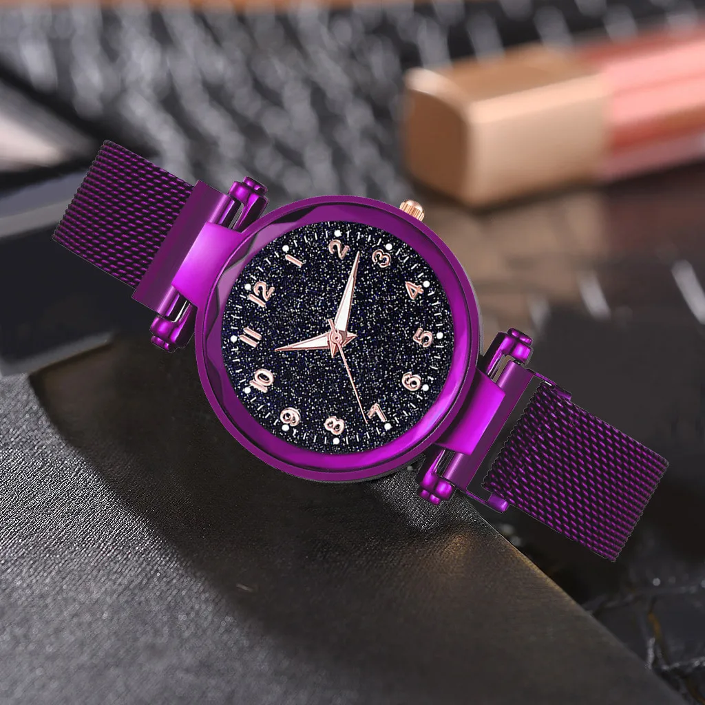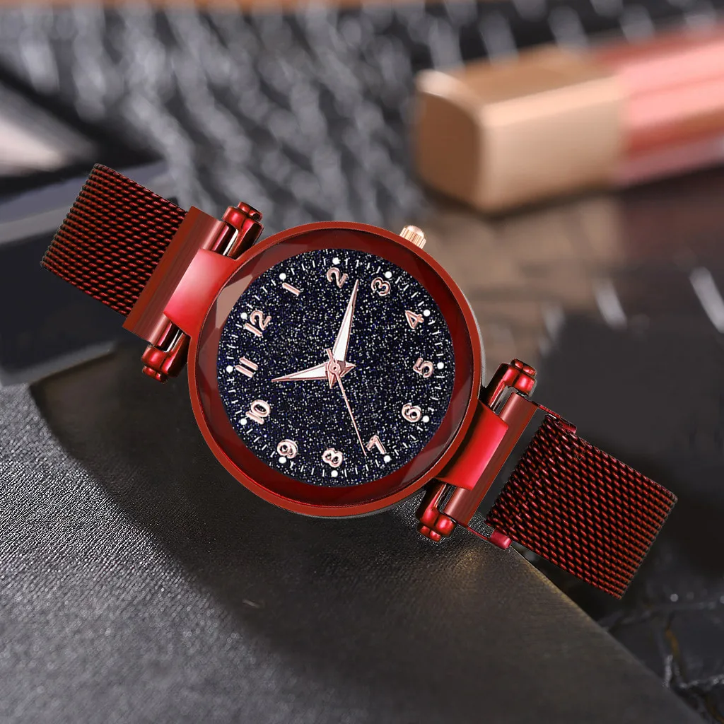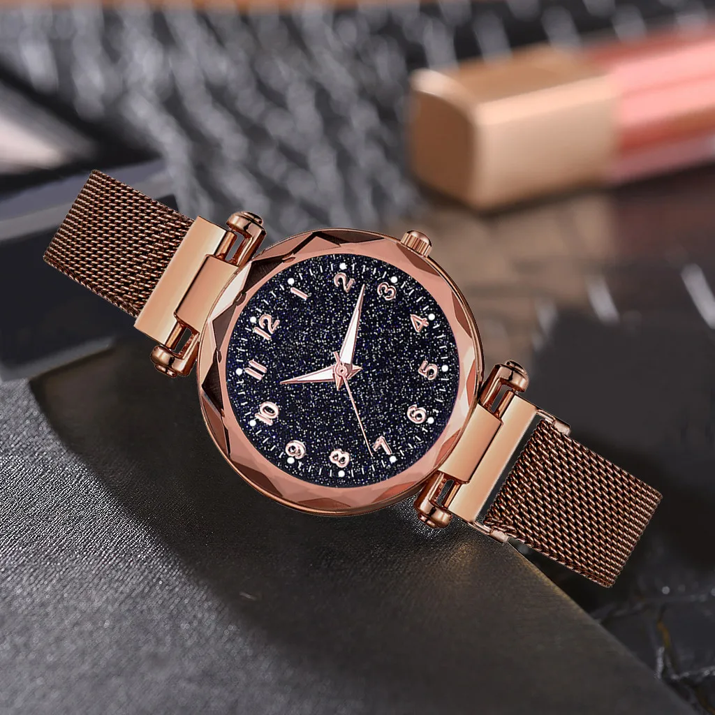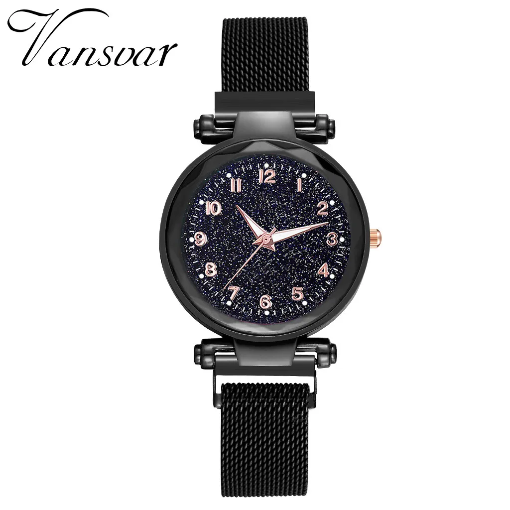 Роскошные женские часы Звездные светящиеся стрелки Циферблат из нержавеющей стали с сетчатым ремешком женские кварцевые часы подарок наручные часы подарок 2019