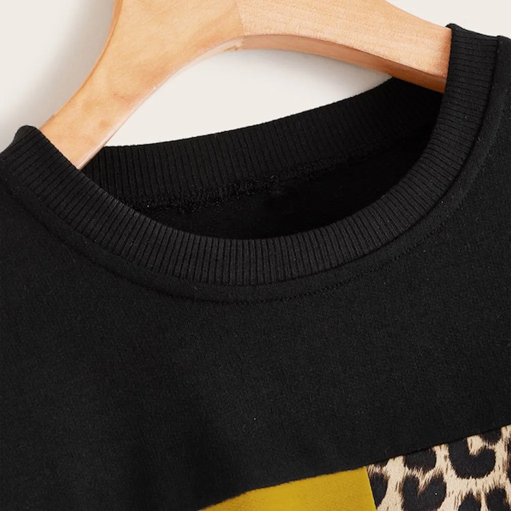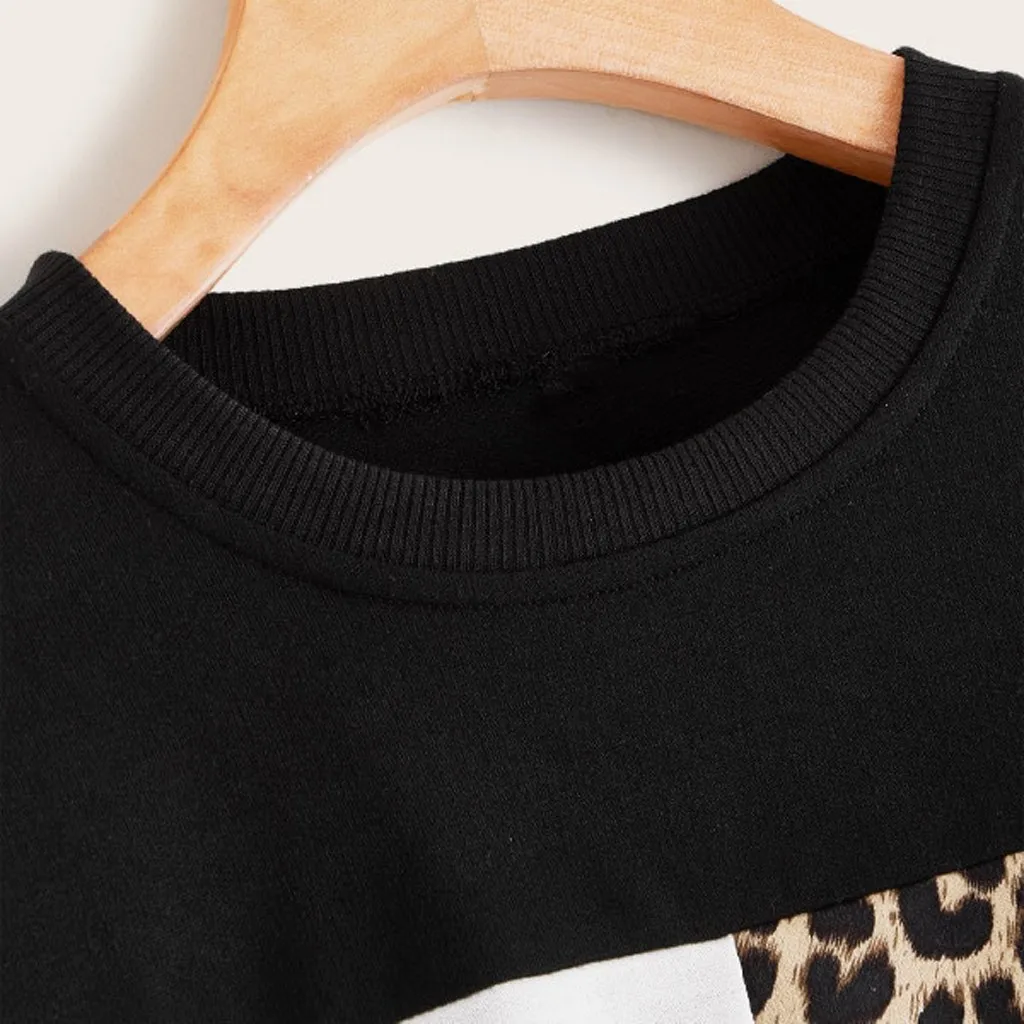 Женская блузка с круглым вырезом и леопардовым принтом, хлопковая толстовка с длинными рукавами