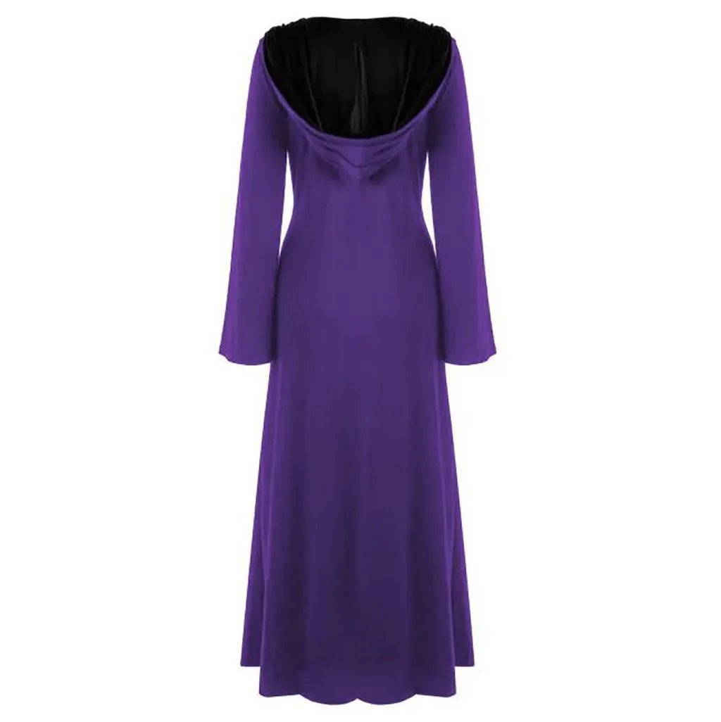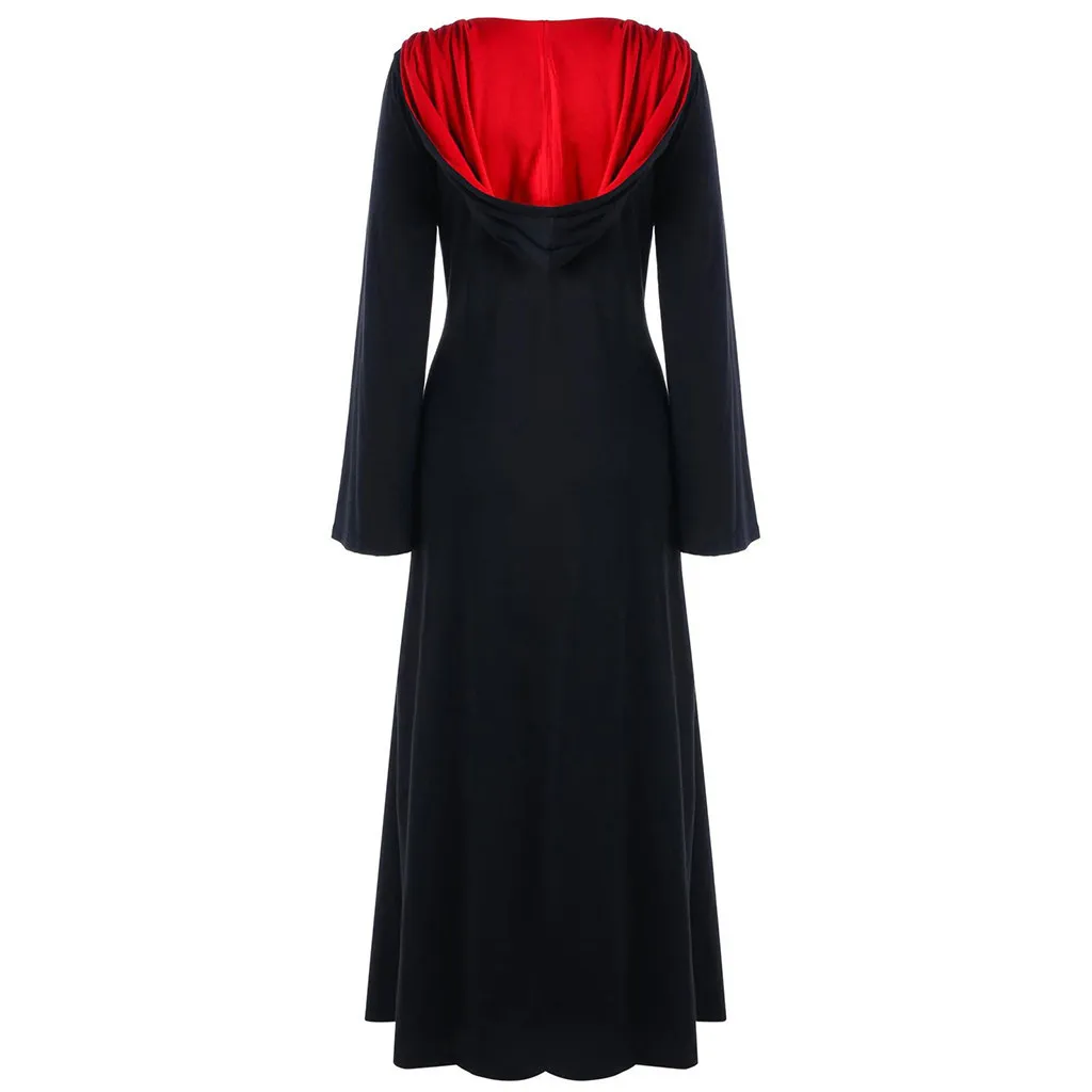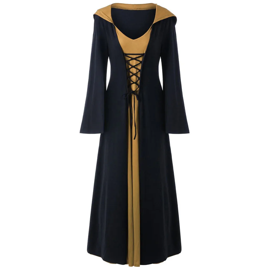 Женское длинное платье макси с капюшоном, шнуровкой и длинными рукавами, в стиле пэчворк, для Хэллоуина, размера плюс