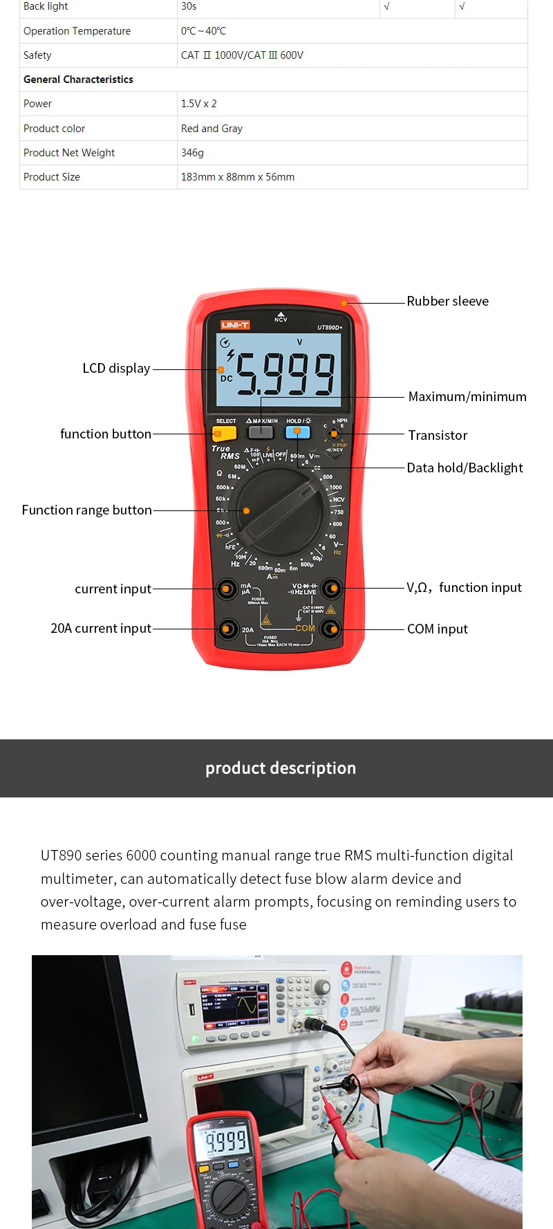 Цифровой мультиметр True RMS ручной диапазон AC DC Частота, емкость, температура измерительный прибор с подсветкой