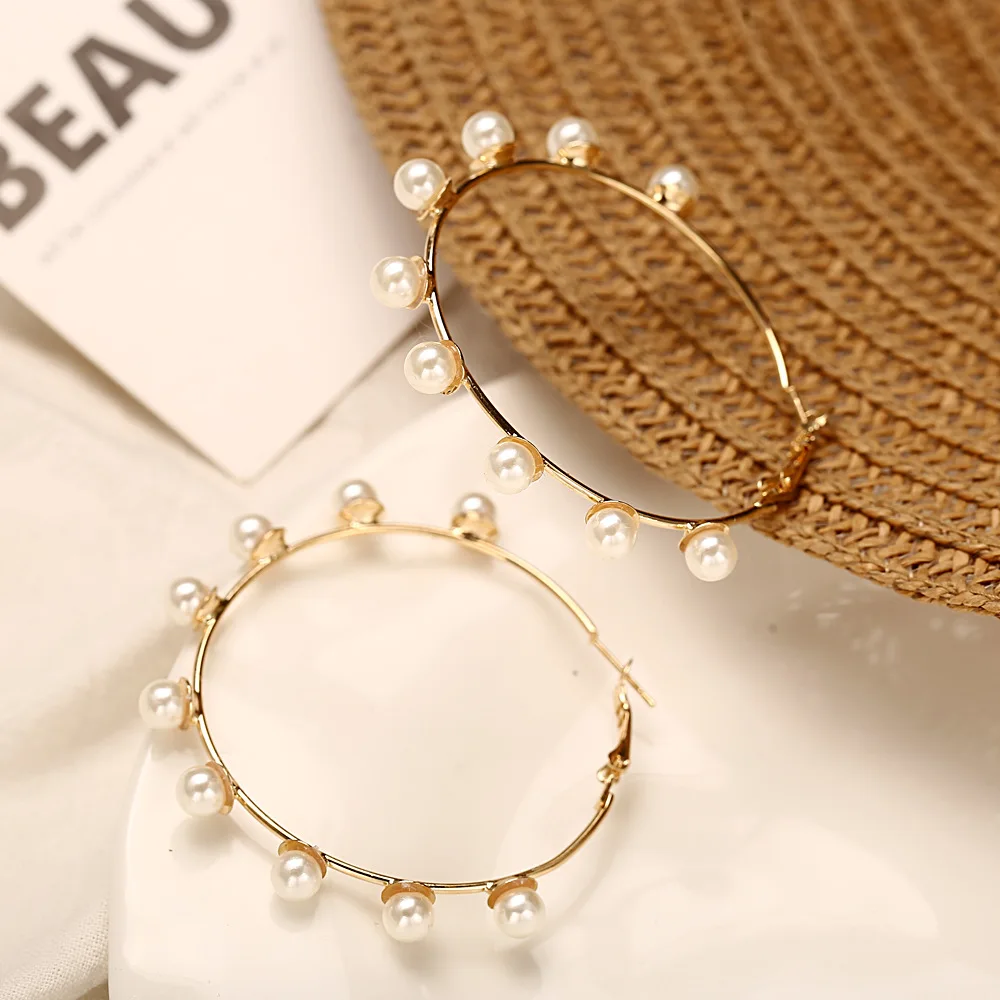 Жемчужные серьги-кольца для женщин и девочек, уникальные витые большие круглые серьги из бисера и кристаллов, эффектные модные ювелирные изделия