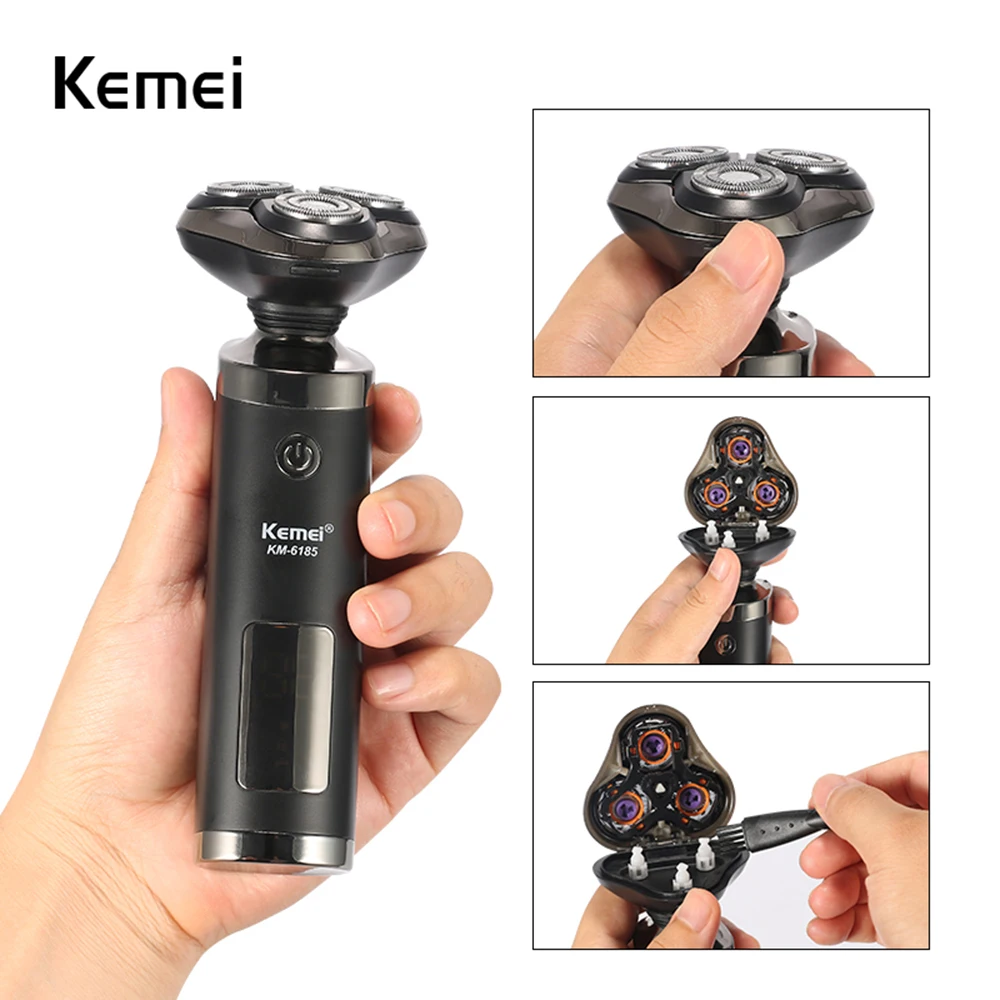 100-240 В Kemei 3D электробритва, Бритва для мужчин, бритвенный станок, триммер для носа, перезаряжаемая Бритва для бороды, водонепроницаемый уход за лицом