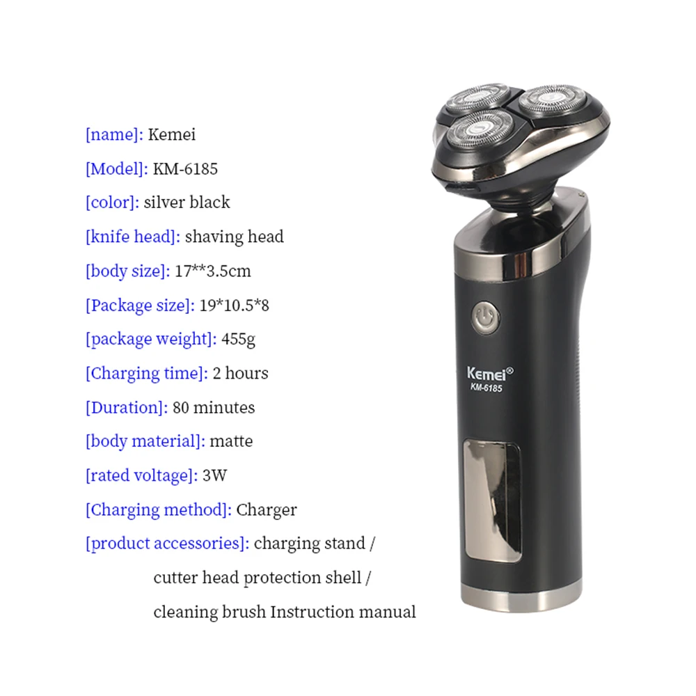 Этот продукт является перезаряжаемой бритвой. Когда вы используете, просто возьмите немного мыла и воды, включите бритву до тех пор, пока мыло не настанет красиво. Затем снимите краску с воды. Этот продукт имеет четыре головки бритвы, индивидуально рефлекторная система действий всегда может приблизиться к контуру лица, чтобы эффективно брить волосы любой длины и в любых растущих направлениях. Разумный дизайн обеспечит лучший эффект бритья.