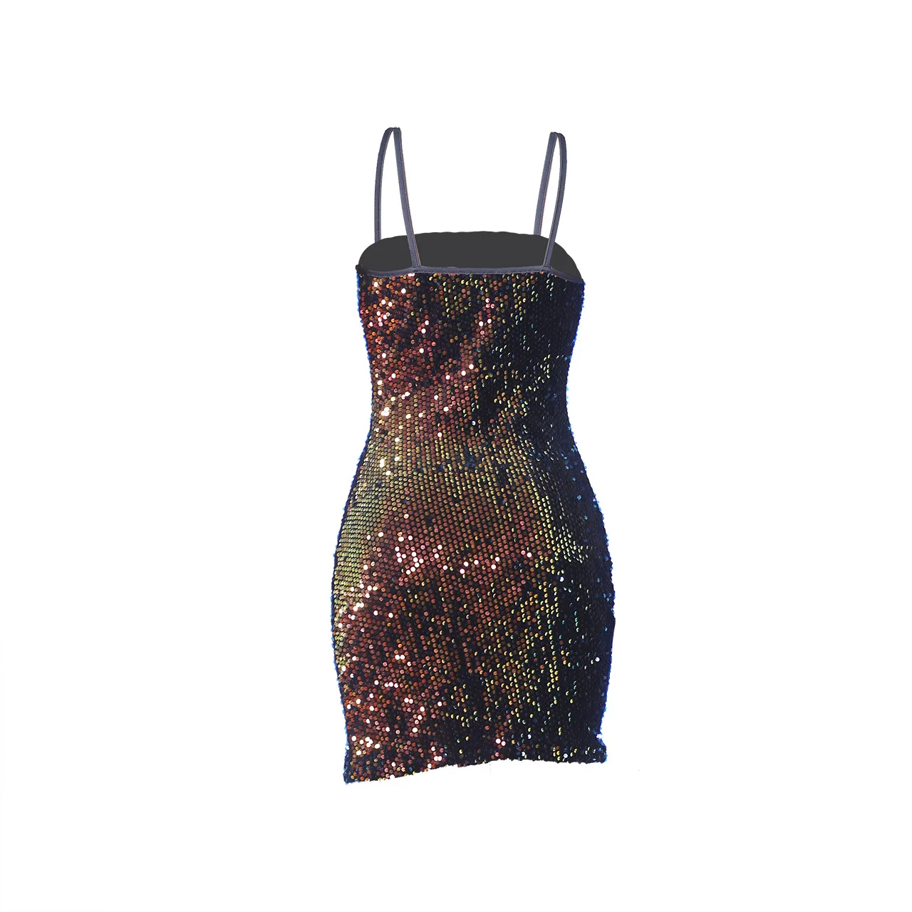 Sexy Spaghetti Straps Sequin Dress Party Dress Slinky Bodycon Dress Mini Dresses Woman Party Night Backless Plus Size 2XL