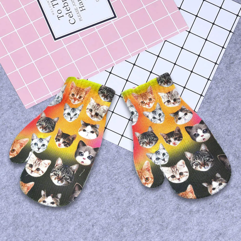 Детские зимние теплые вязаные милые перчатки с объемным животным принтом котенка