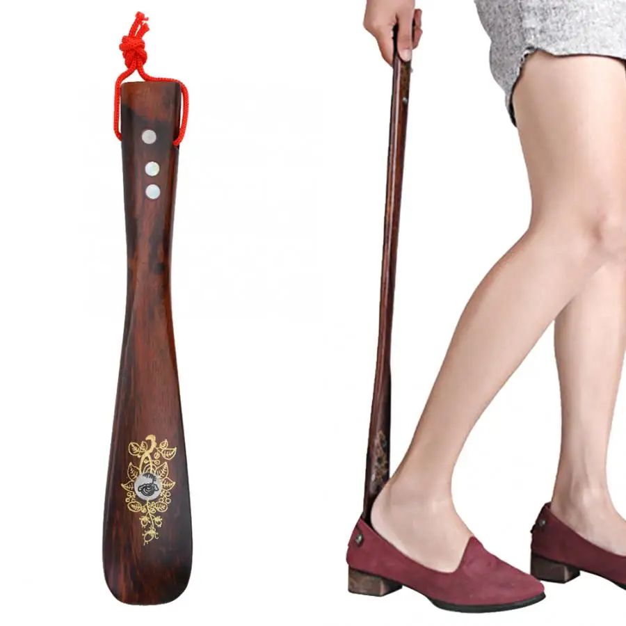 Деревянный башмак Рог 22 см инкрустированные снаряды обрабатываются обувь подъемник инструмент-ложка с красным шнурком кисти для замши нубук ботинок обуви инструмент-ложка