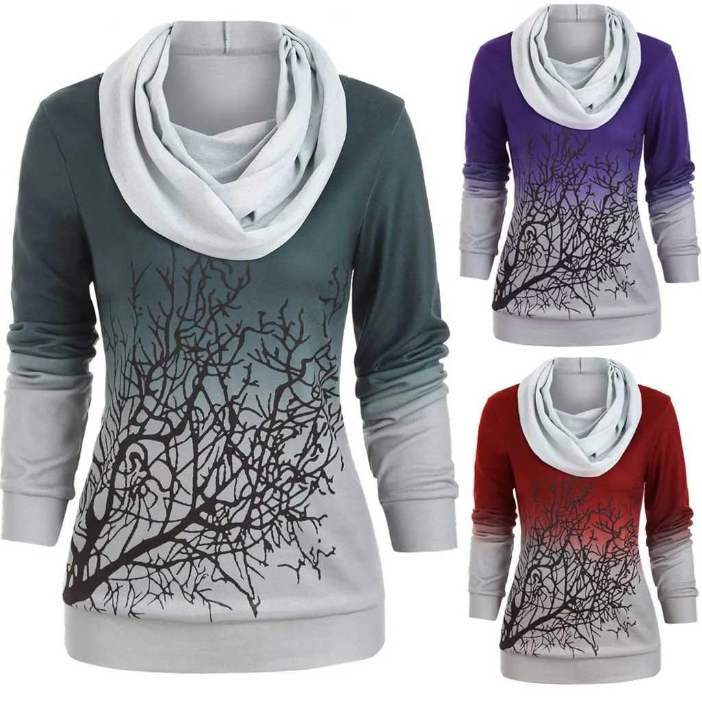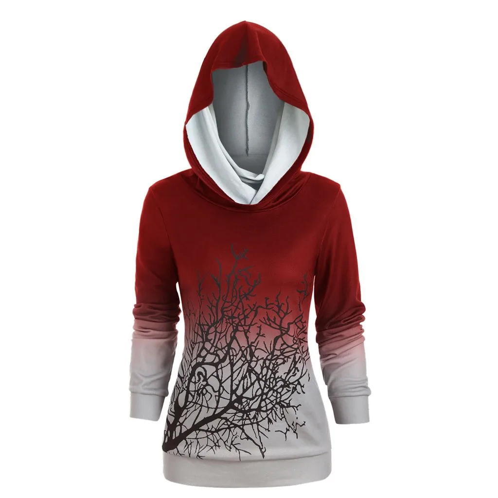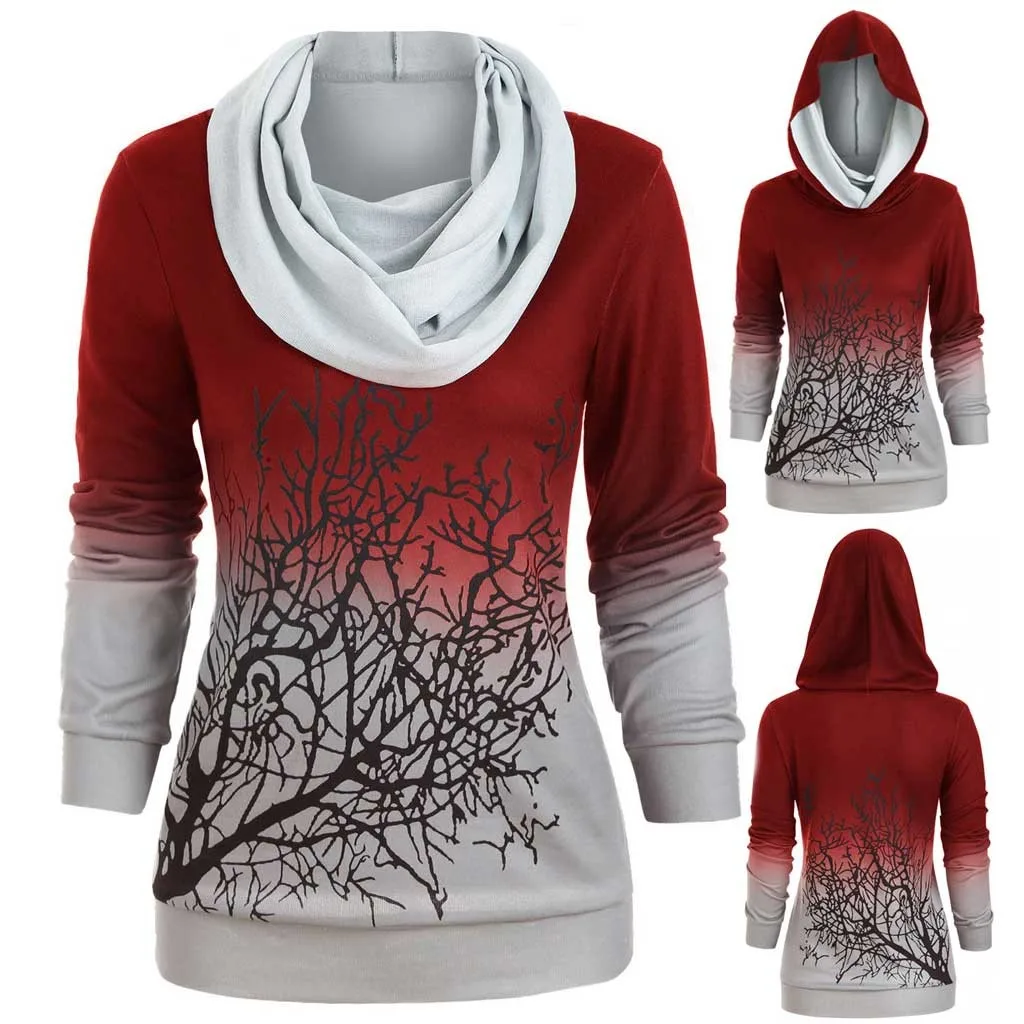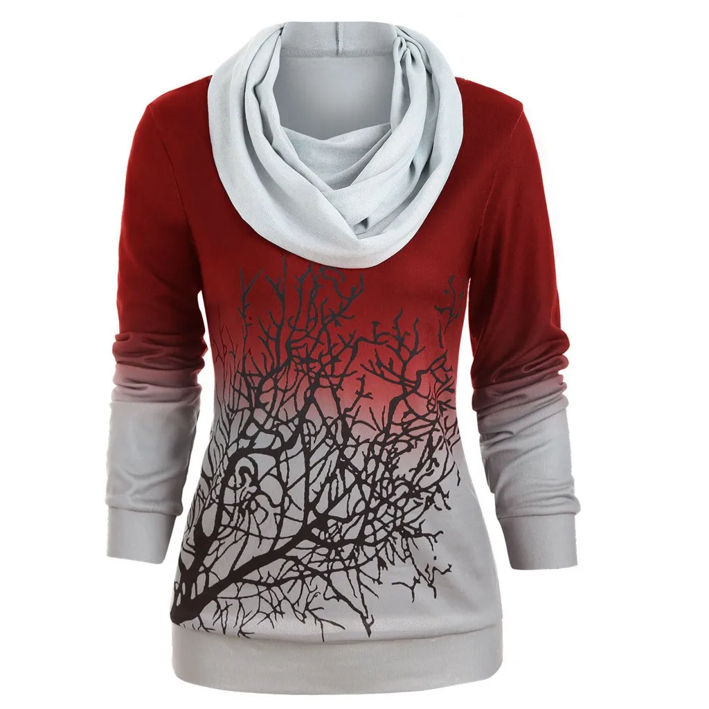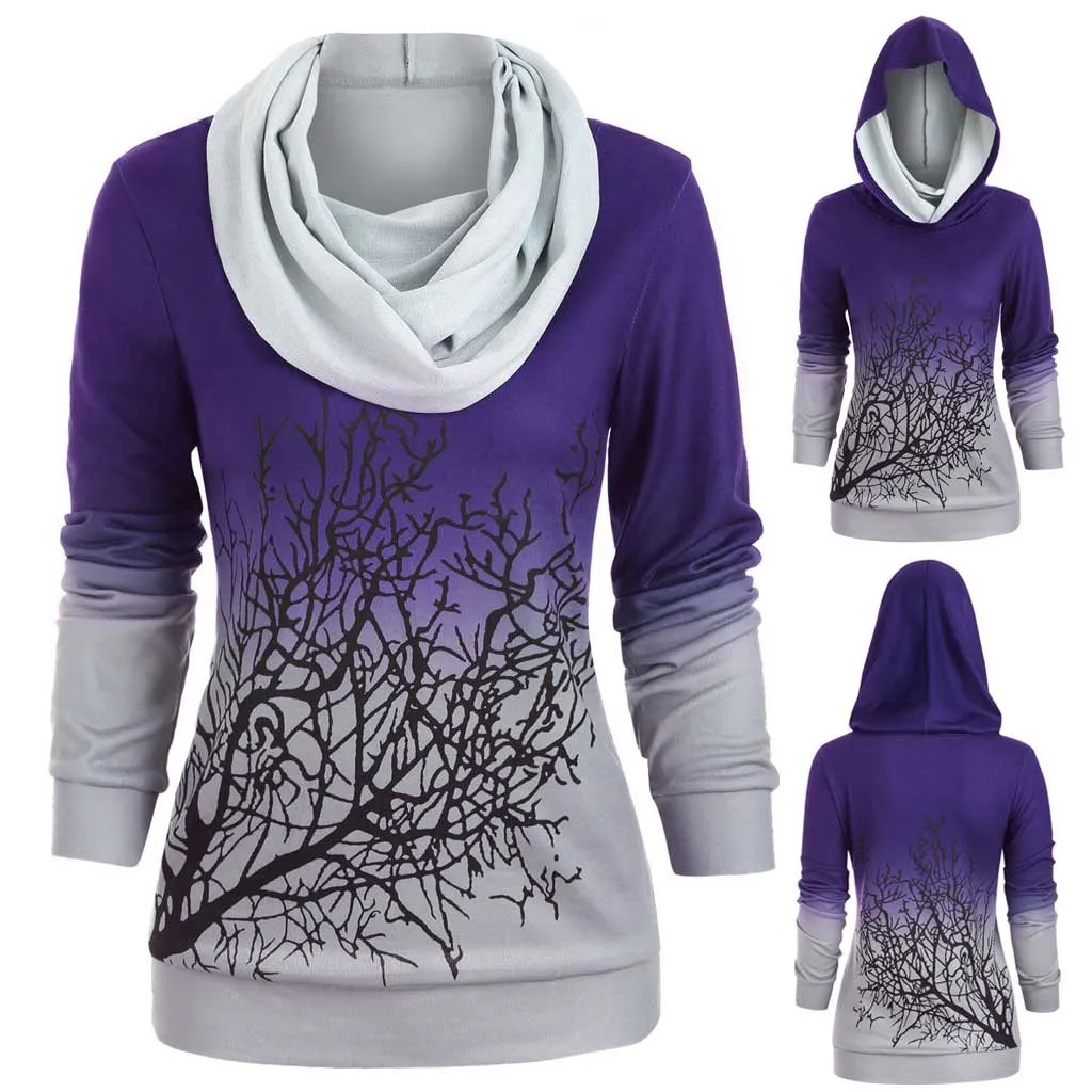 Женщины Плюс Размер Хэллоуин Дерево печати трансформер воротник толстовка